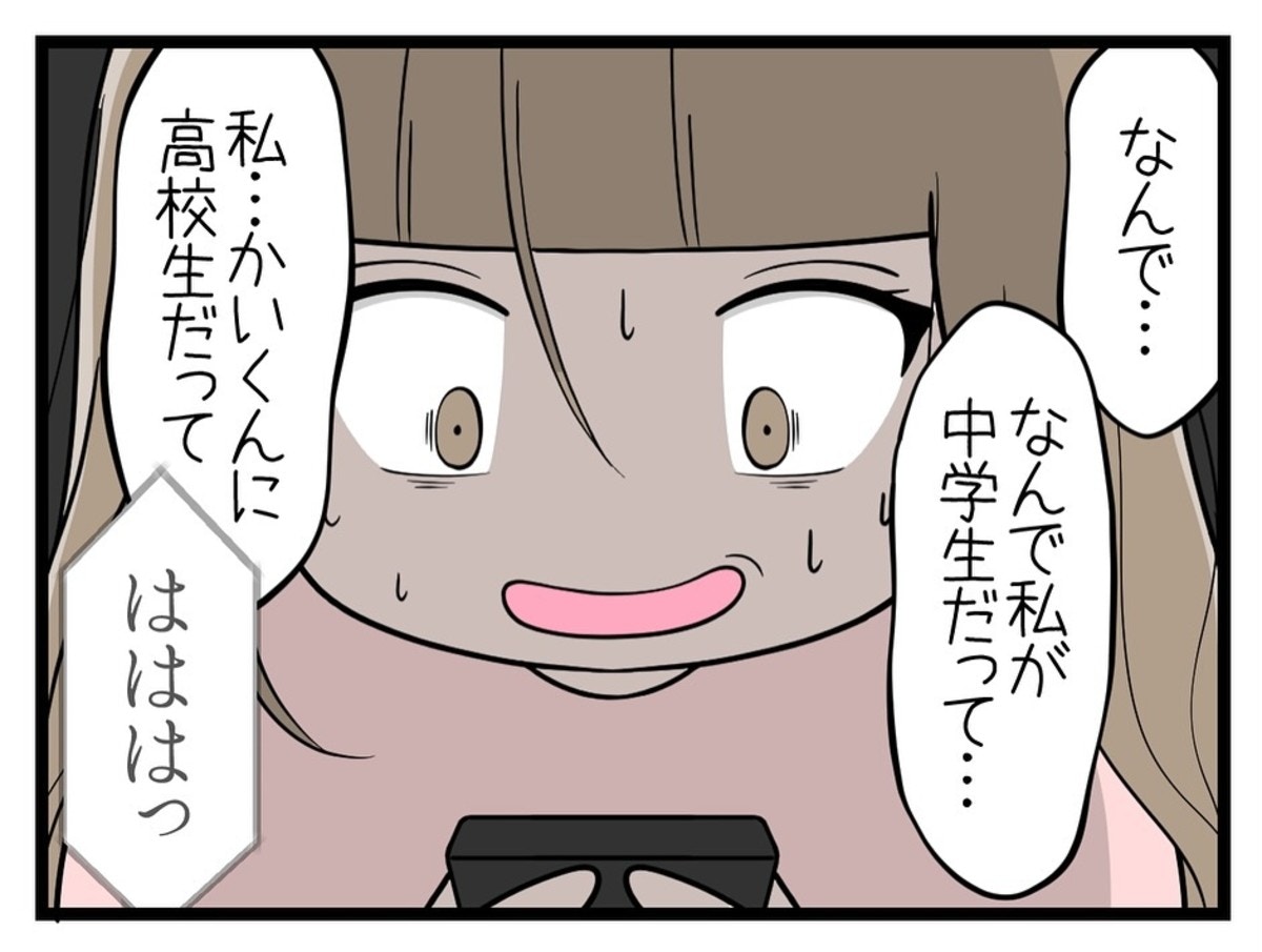 めいさんは、「かい」が自分を中学生だとはっきり言ったので驚いてしまいます。そんな彼は、めいさんのSNS利用の甘さを指摘して笑っていました。本名や住所もバレていると言われ怯えてしまっためいさんに、バラさないから「何でも言うことを聞いて」と言います…。