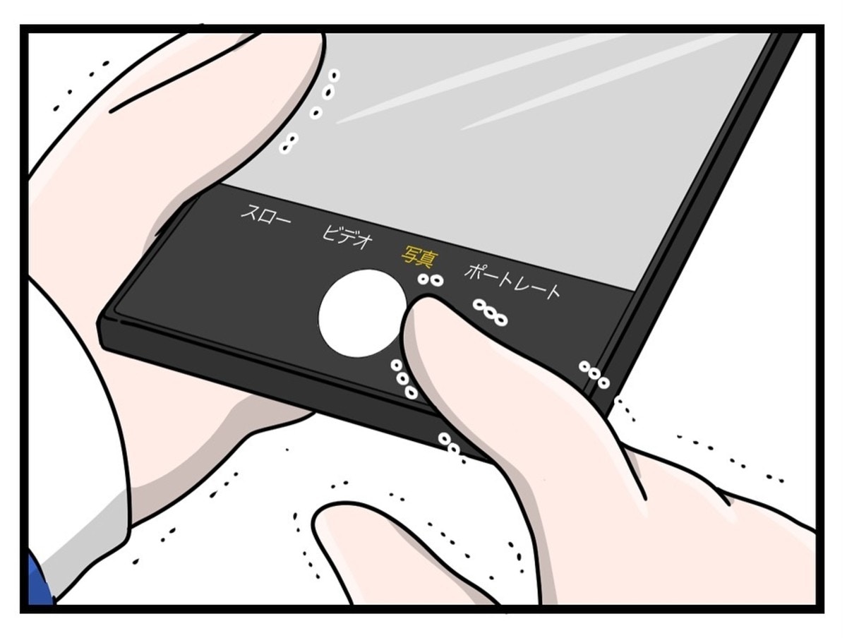 「写真」と呟くめいさん、スマホを持つ手が震えています。