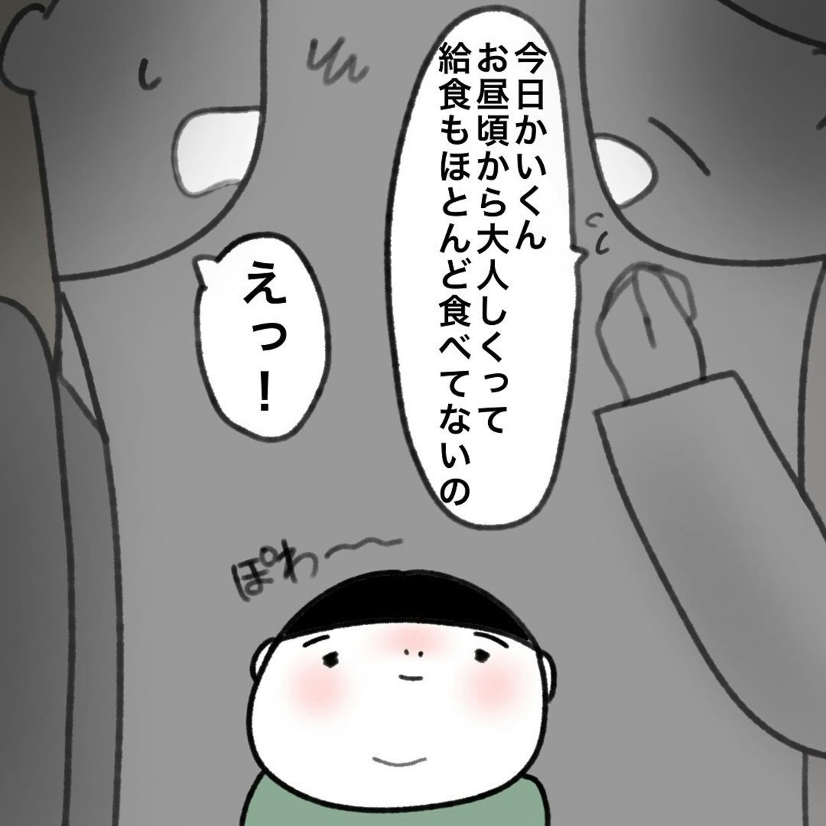 お迎えの際に先生に呼び止められたかかじりさん。先生から体調不良の前兆のような報告、これはかかじりさんにとって不穏を意味しますね。