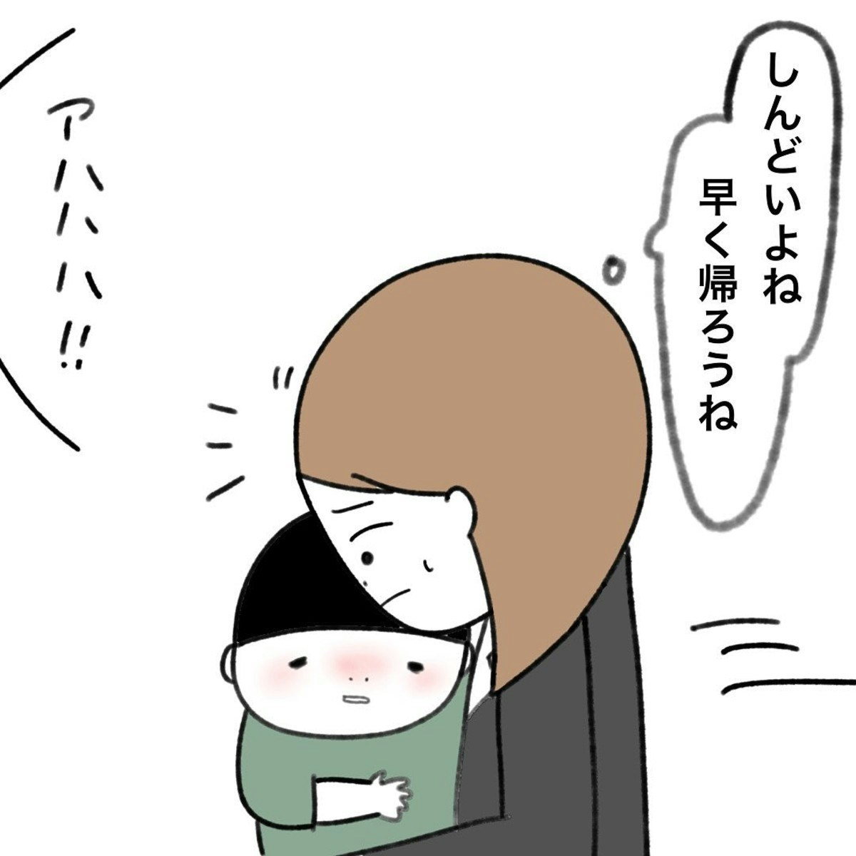 フルタイムで働き、息子さんの保育園の送迎をこなすかかじりさんにとって、朝は勝負の時間。子どもを送った後に楽しそうにおしゃべりをするママたちをうらやましいと思うも、時間が惜しいかかじりさんは、息子さんをスムーズに預けるべくテキパキとこなします。
