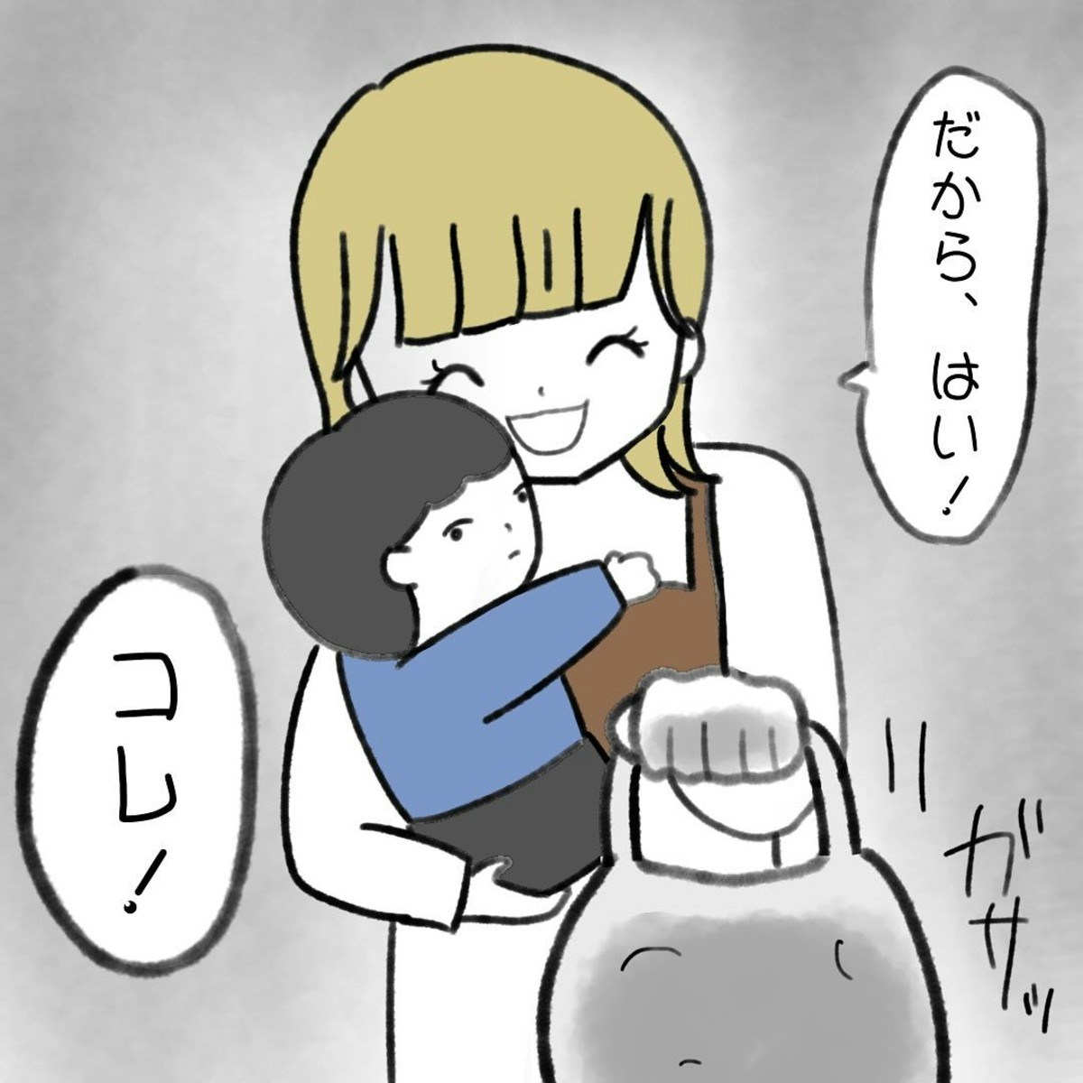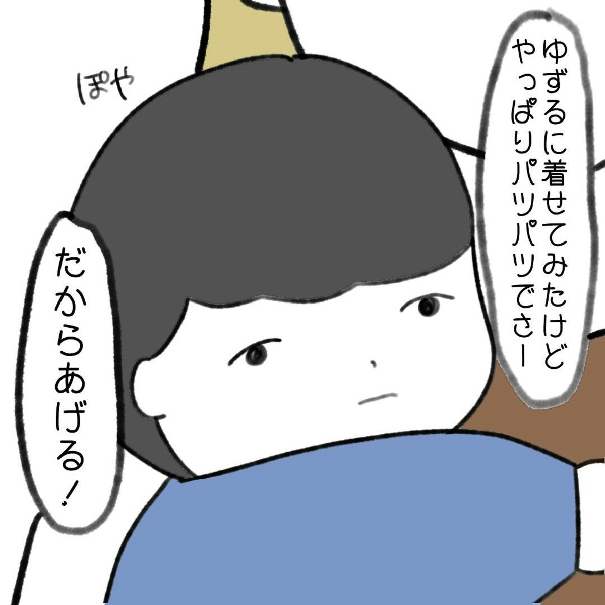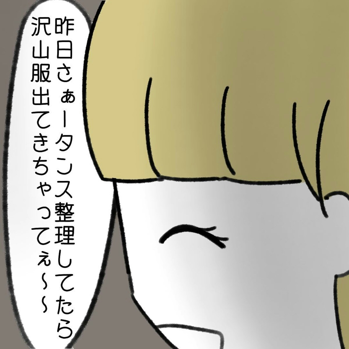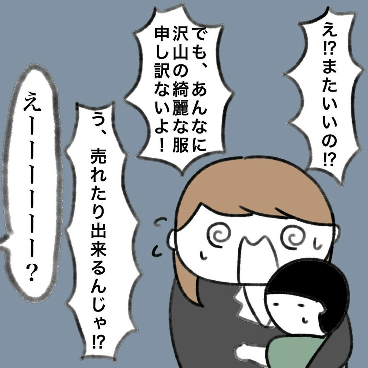 かかじりさんは、渡部さんと話す仲になると、すぐに渡部さんの息子のおさがりをもらってほしいといわれます。遠慮するも、結局もらうことになり、中身を見てみるとまるで未使用品のようなきれいな服が。そこですぐにお礼をしようとお菓子を購入し、翌日に渡部さんに渡しました。すると渡部さんはかかじりさんと別れたあとにスマホでお菓子について調べていたのでした。