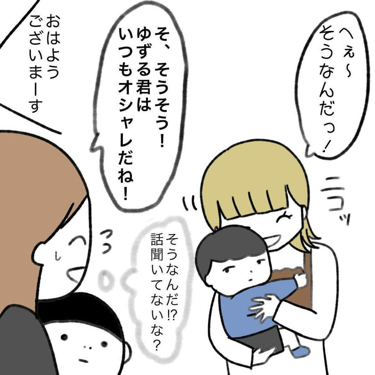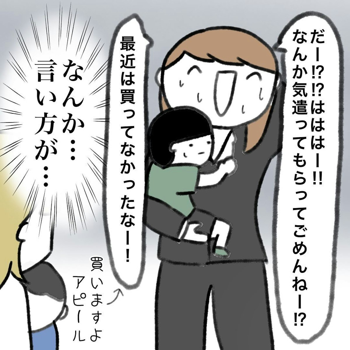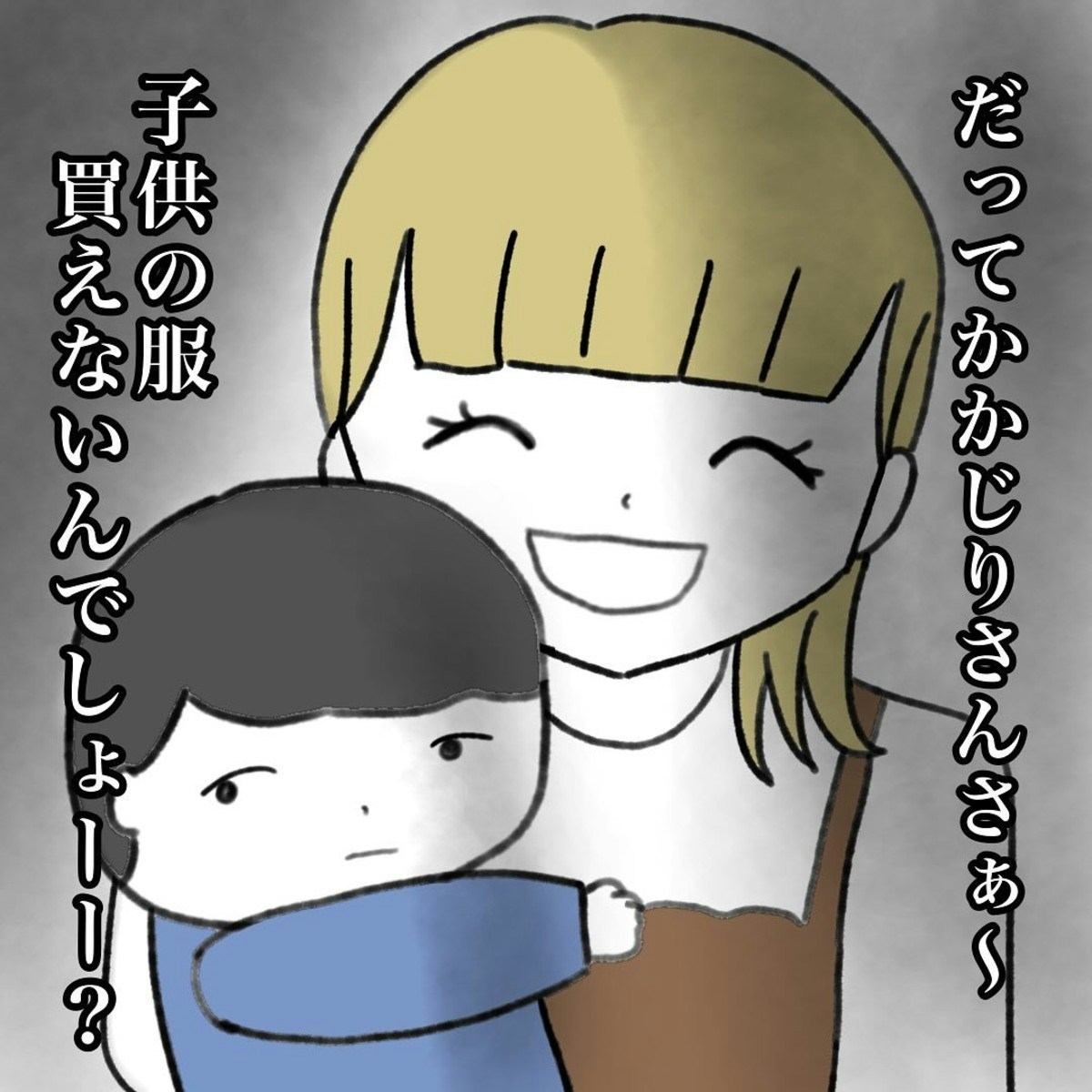 仲良くなった渡部さんの息子さんのおさがりをもらうことになったかかじりさん。中身を見てみるとまるで未使用品のようなきれいな服が。お礼に洋菓子店のお菓子を渡部さんに渡すことにします。しかし翌日、渡部さんからお菓子のお礼と共に「だから、はい」とまたおさがりを渡されたのでした。