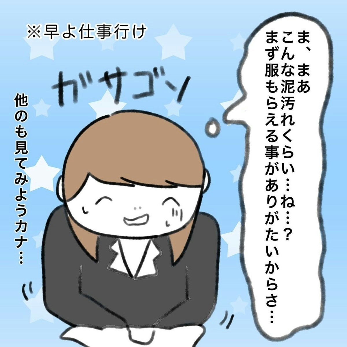 あまりにひどい物言いに脳内はパニックになるかかじりさんは、自分にも非があるのか考え直します。そしてもらったおさがりの袋のなかにひもが付いた服を見つけたのでした。