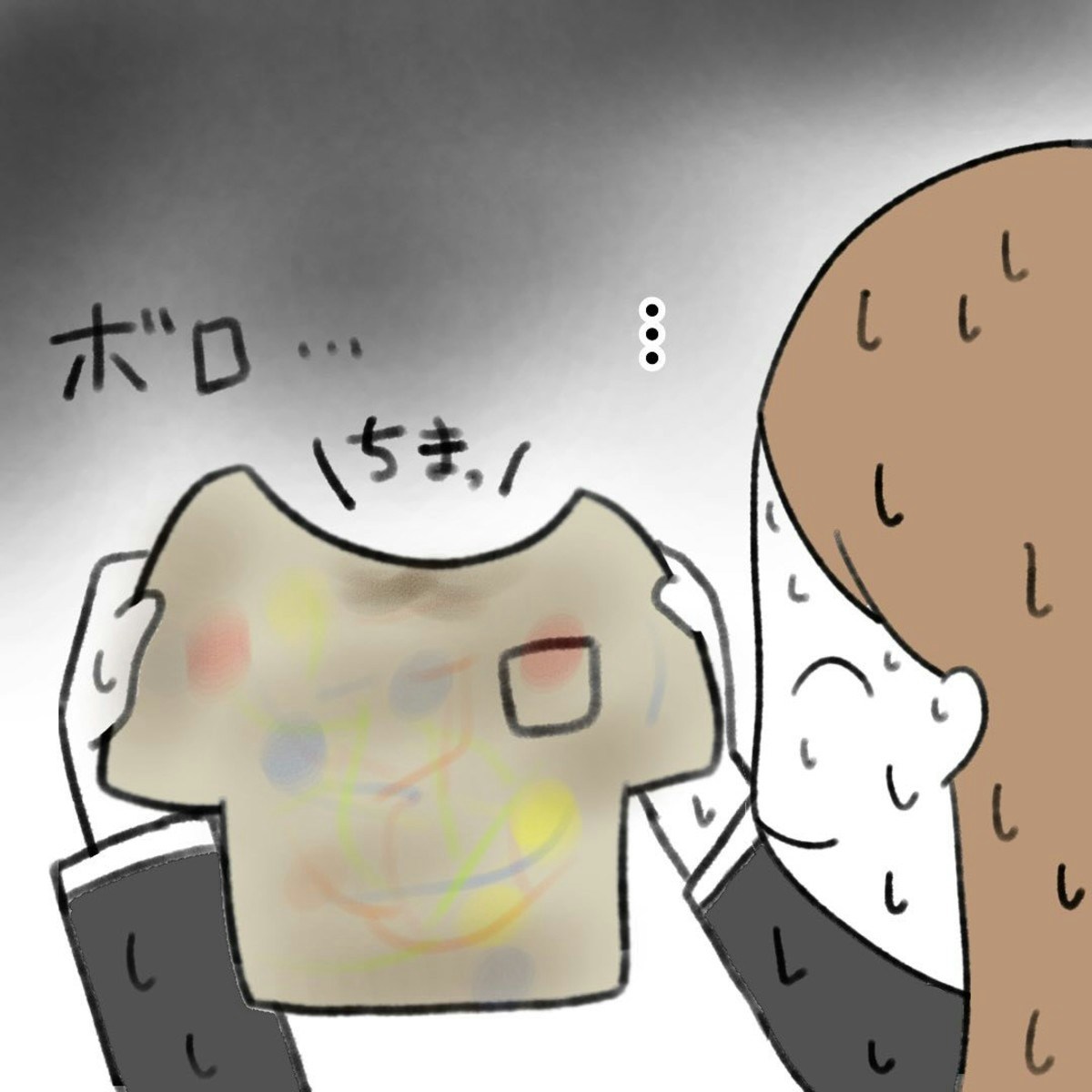 今回は、きれいな服はなさそうです。確かに、洋服としての形状は保っていますが、ひどく汚れた服を他人におさがりとして渡すことをふつうはしないでしょう。