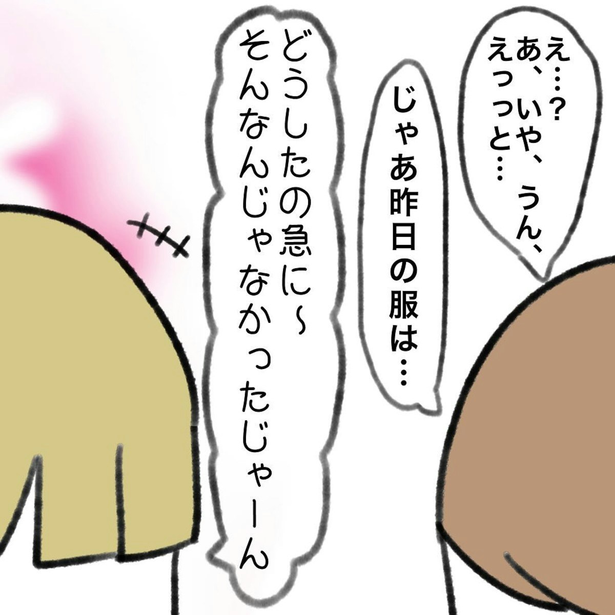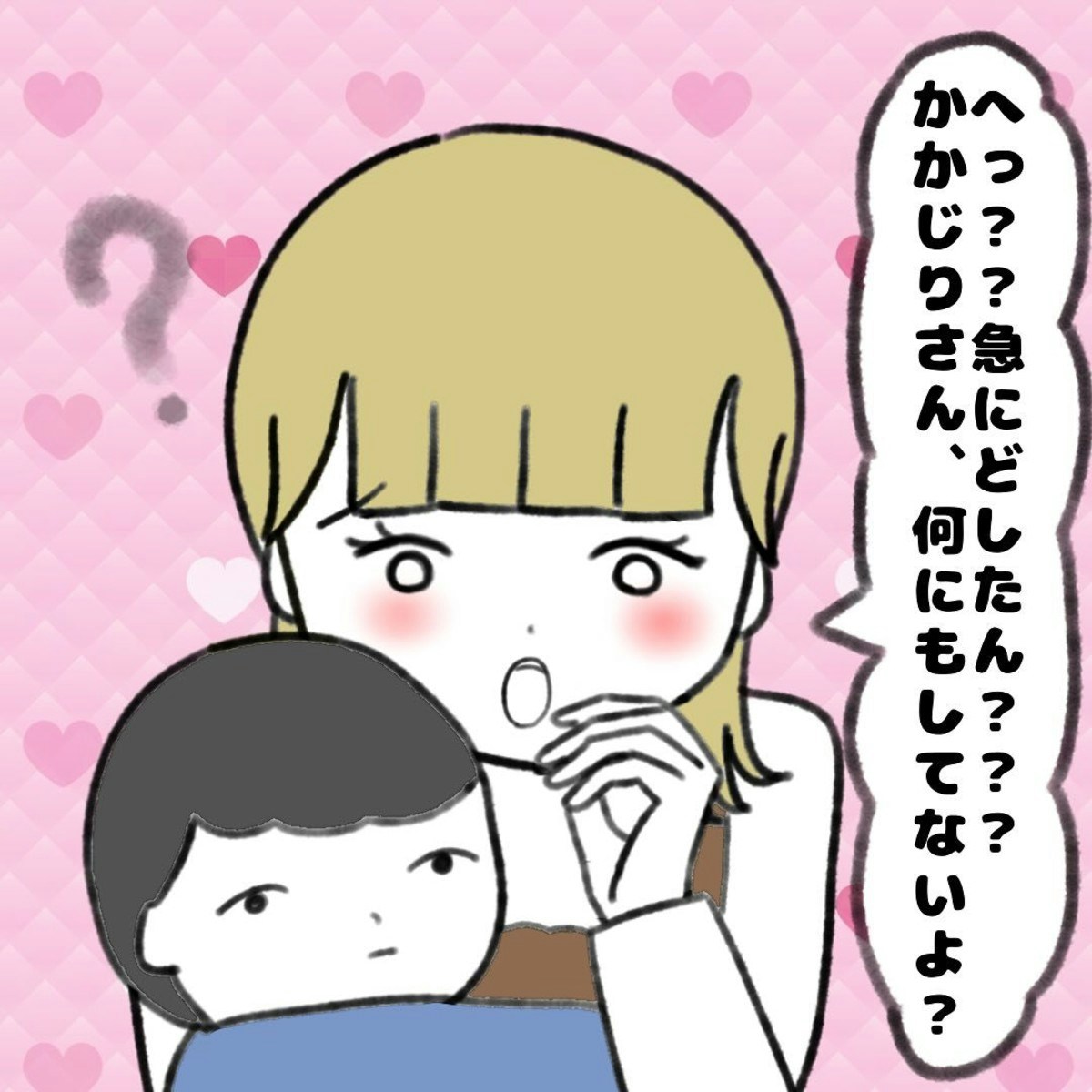 3回目のおさがり服の中身が赤ちゃんの肌着や汚れた服だったことで、嫌がらせではと感じます。しかしかかじりさんは何か自分が嫌なことをしてしまったから、意地悪をされていると考えます。次の日、保育園で渡部さんと顔を合わせると脅しのような威圧感で、おさがりの感想を求められたのでした。
