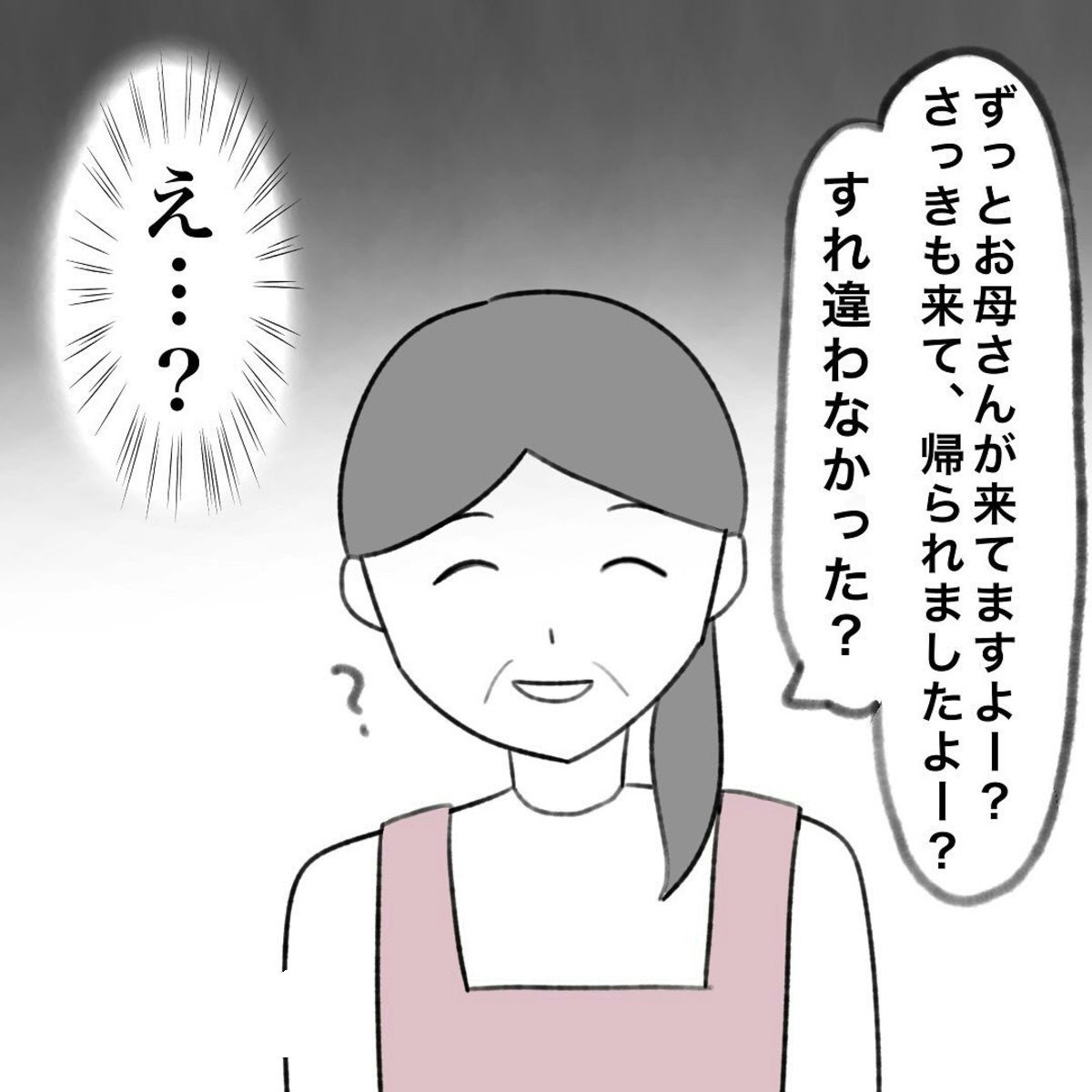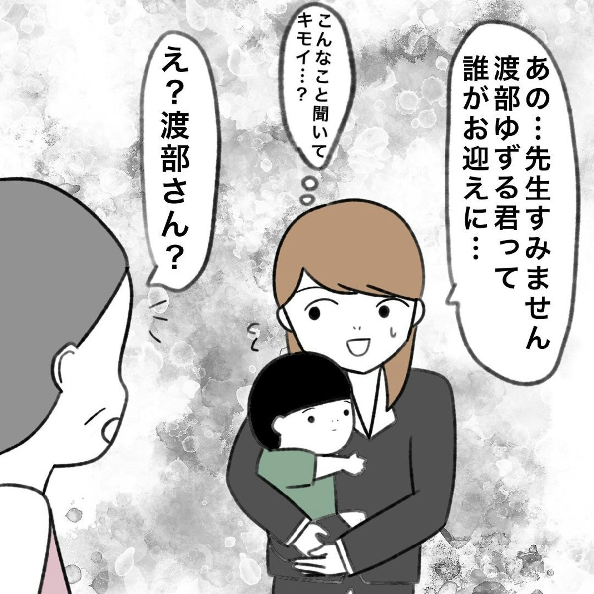 しかし次は、先生にかかじりさんの落とし物としておさがりの袋を預けていたり、車のボンネットにおさがりを入れた袋を置き、嫌がらせを続けてくるのでした。我慢できなくなって、渡部さんに直接言うことを決めて待ち伏せをするも、会うことはできず。おさがりの嫌がらせは続くのでした。