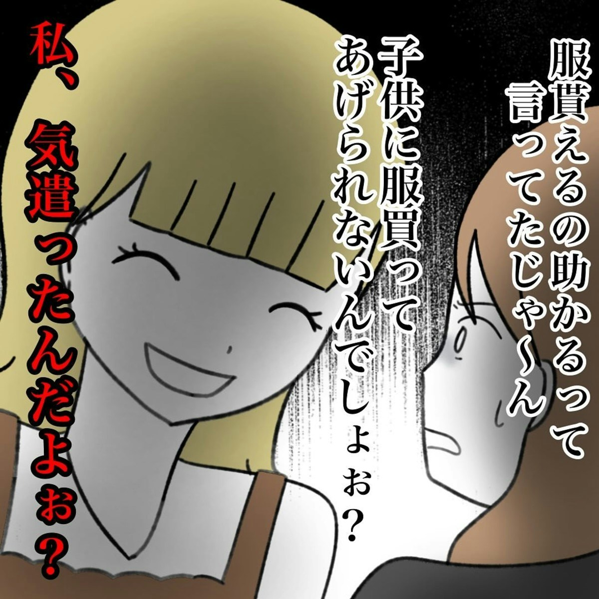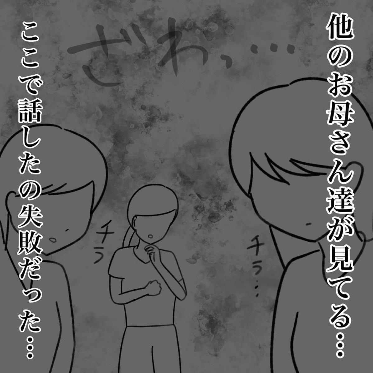 ここは保育園です。他のママたちも、2人のやり取りの異変に気が付いているようです。この状況に、かかじりさんはパニックになりそうです。
