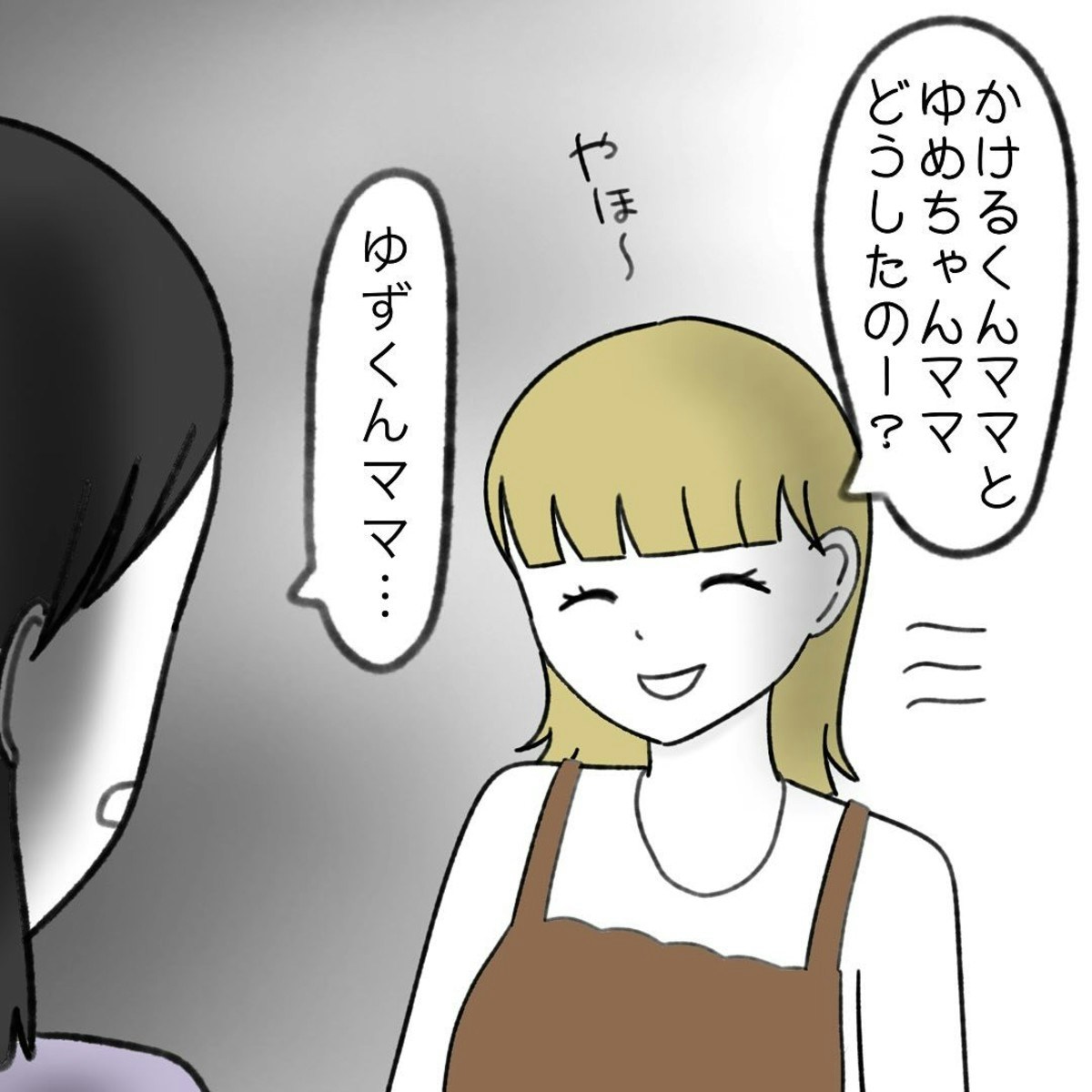 渡部さんは笑顔で他のママに対応します。この状況に嬉々としていて、かかじりさんのことを陥れようとしていそうです。