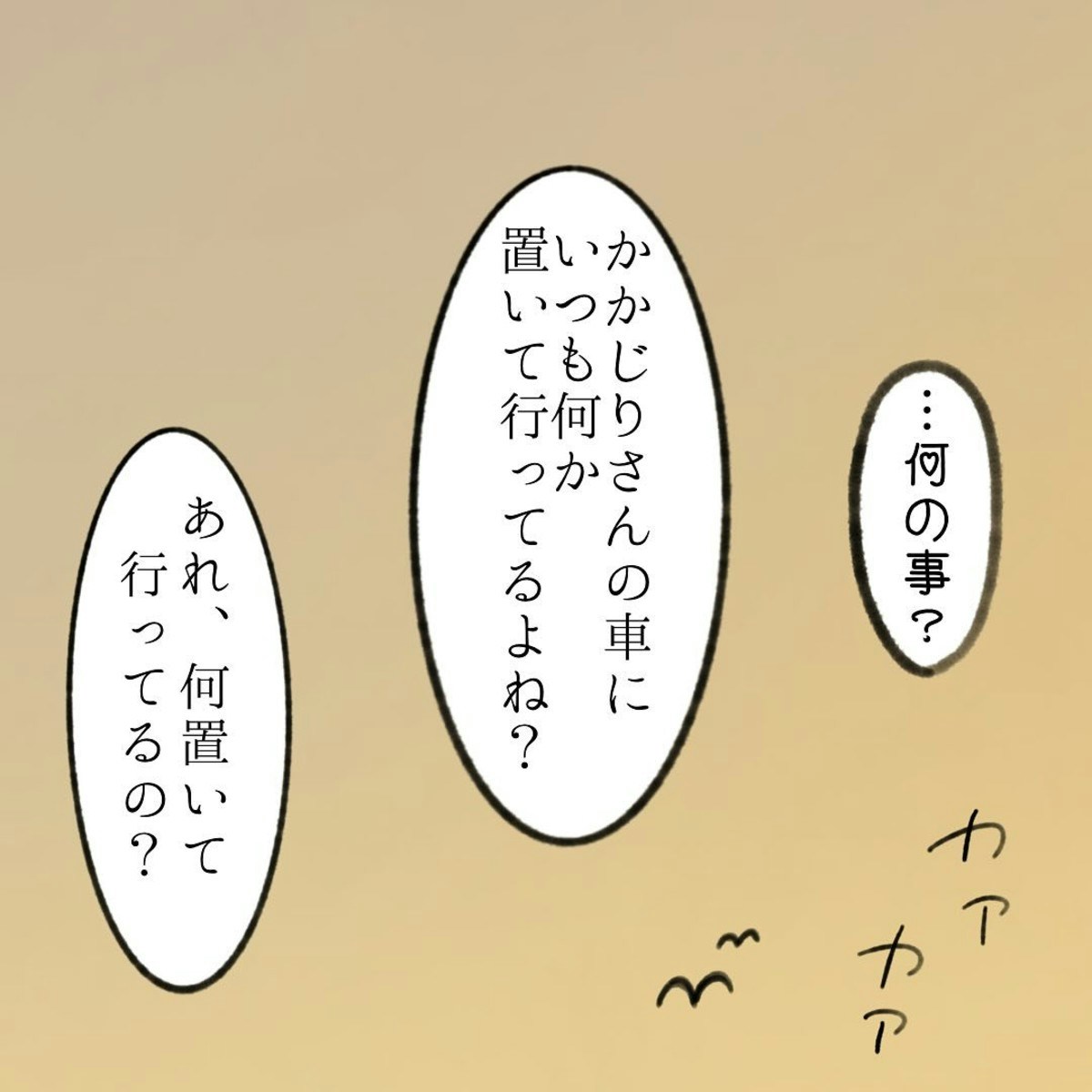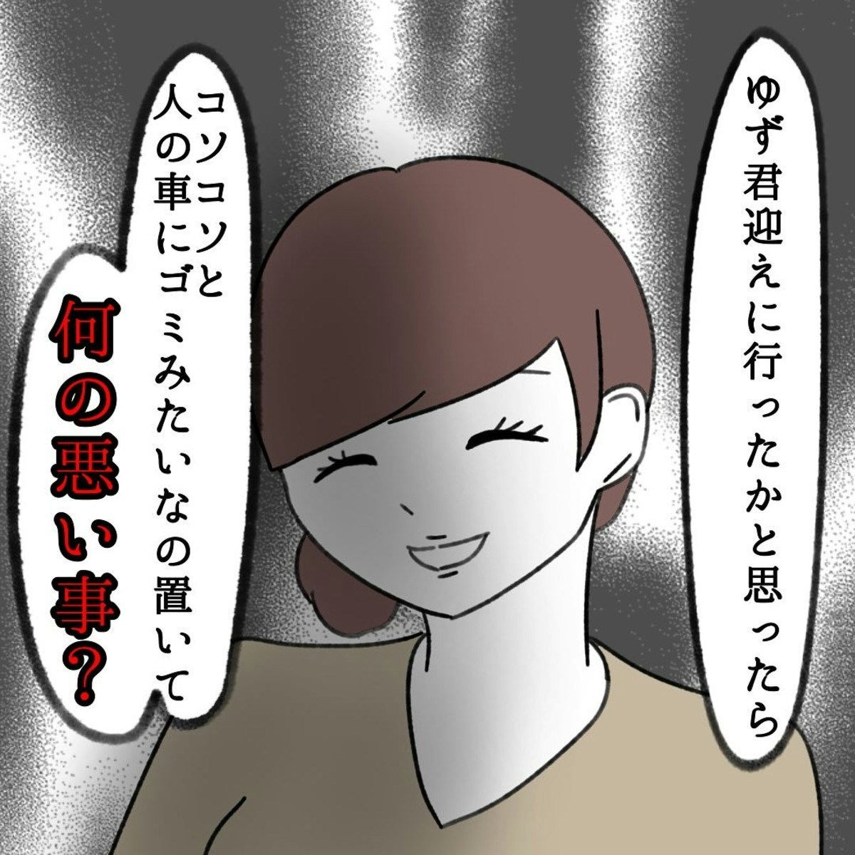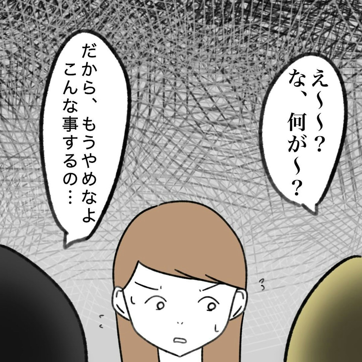 かかじりさんは、渡部さんに嫌がらせをやめるように言うことを決心します。さんざん嫌がらせをしておきながら、ニコニコしている渡部さんに「おさがりの嫌がらせをやめてほしい」というと笑顔ではぐらかします。そして極めつけに、子どもにいつも同じ服を着させていて不憫だと言したのでした。
