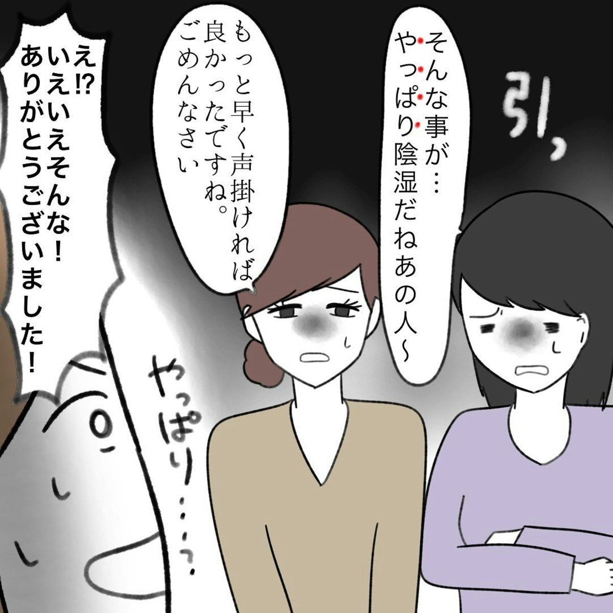 あまりにひどいのであきらめてしまいそうになりますが、そんなとき、保育園の保護者のゆめちゃんママとかけるくんママが、助けに入ってくれたのでした。それでもめげずに悪態をつく渡部さんですが、2人の意味深で冷静な指摘に言葉を詰まらせます。