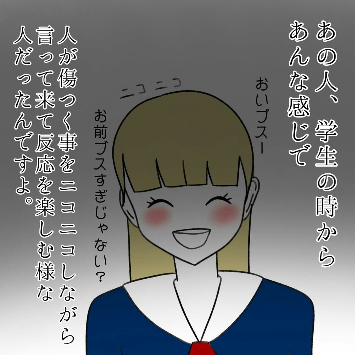 かかじりさんが出会った渡部さんもその一人。最初は気さくに話してくれたものの、次第に不快な言動が増え、嫌がらせを受けることに。思い切って気持ちを伝えたところ、周りのお母さんたちが助けてくれました。なんと彼女たちは、学生時代に渡部さんからいじめられた経験があったのです。大人になり、親になっても「いじめる」という行為をやめられない人がいること驚いたかかじりさん。その後渡部さんは転園し、どうしているかわかりませんが、また新しいターゲットを見つけているかもしれません。