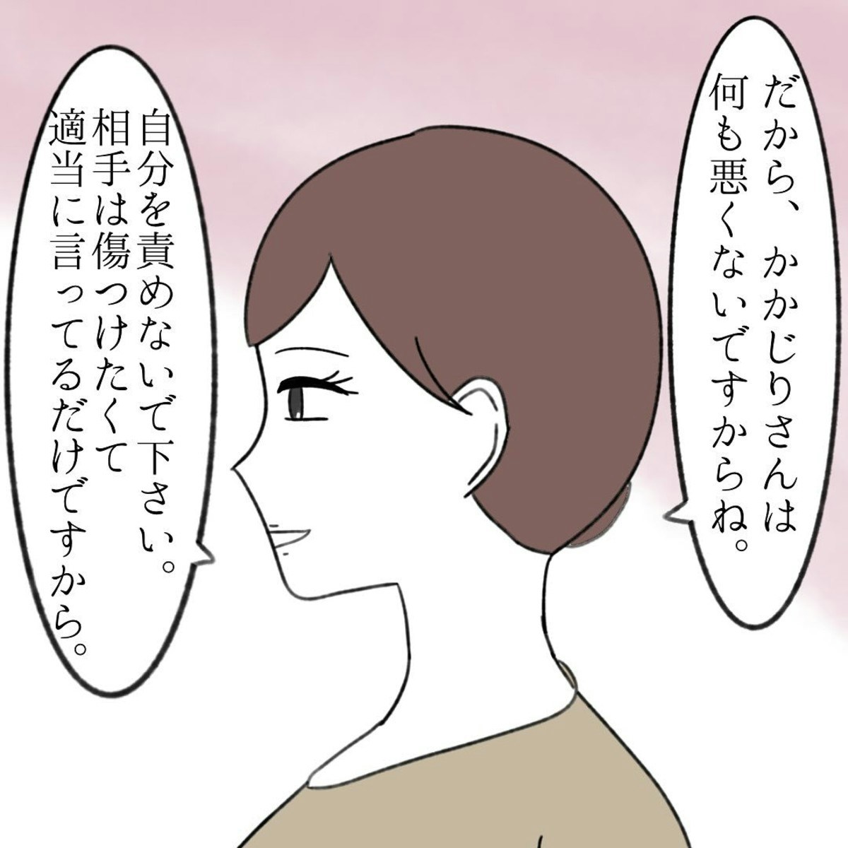 当時のことを思い出し、もう渡部さんとは関わりたくないと思いながらも、やられているかかじりさんを見て思わず声をかけたのでした。恐縮するかかじりさんに、ゆめちゃんママは当時何もできなかった分、少しでも反撃できてよかったと言ってくれました。