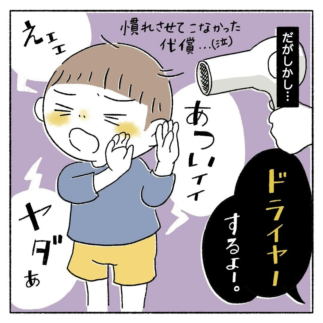 しかし、はーくんはドライヤーが嫌い…そのため、「しっかり洗髪したから大丈夫でしょ」と、カカさんも対応が緩んでしまっていたのです。