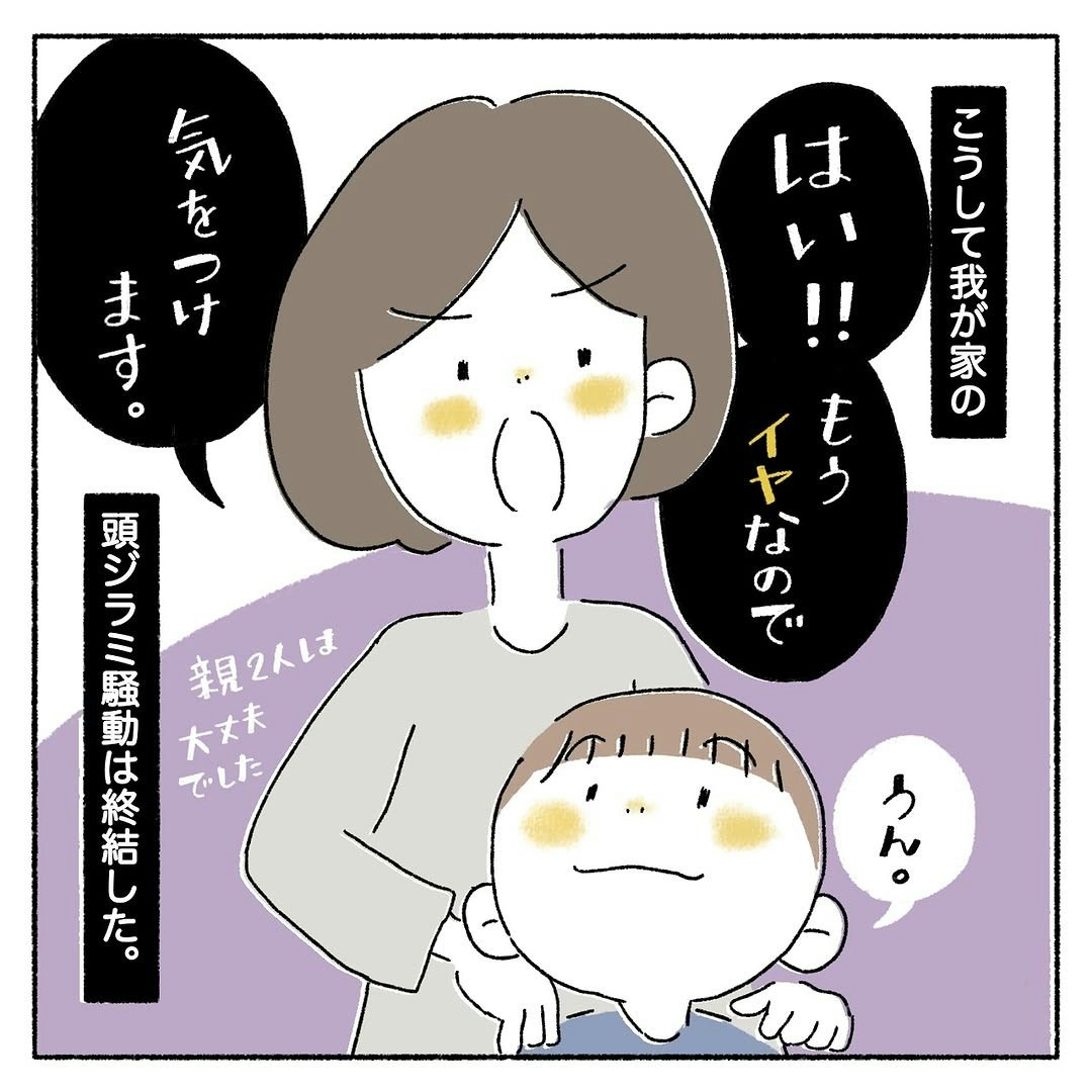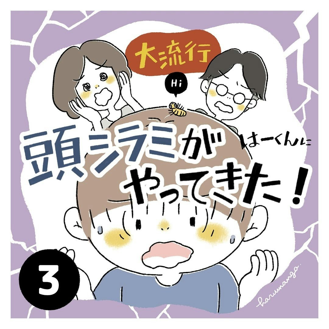 どこかから頭ジラミをもらってきてしまったはーくん。卵にも効果のあるシャンプーや、クシを購入しての対応、衣服やシーツなどの洗濯と乾燥など、家族ぐるみでのさまざまな対応で撃退に成功しました。