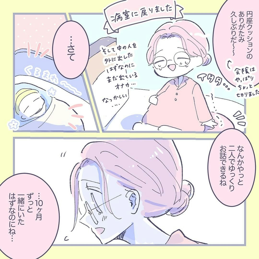 無痛分娩の計画入院によって、順調に出産に至った heraco.さん。ナツくんの出産では、麻酔が切れてしまうアクシデント起きてしまいましたが、今回は大丈夫でした。胎盤まで見せてもらうことができ、落ち着いたところで、フユくんと改めてご対面です。