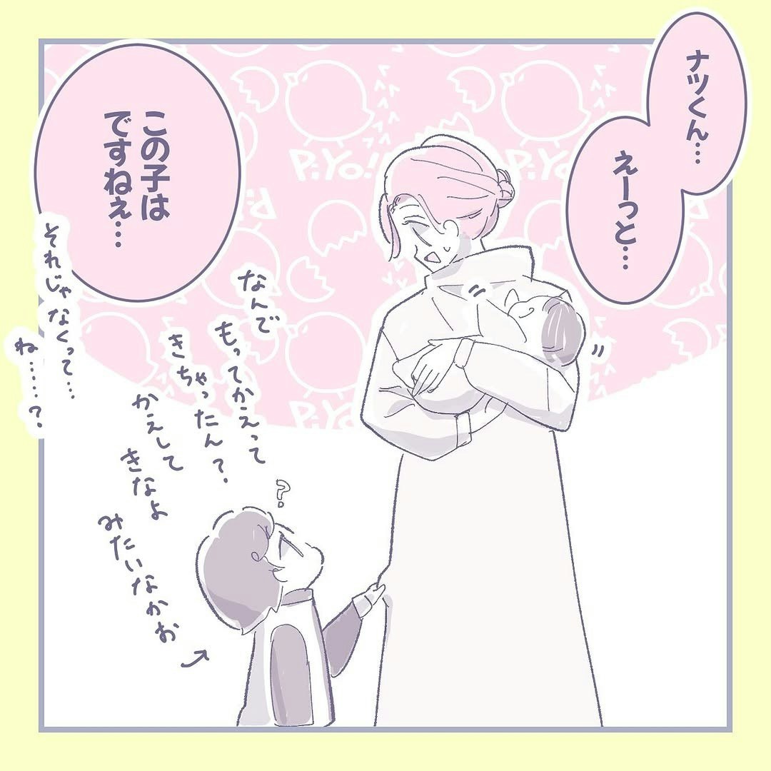 "4人家族"として帰宅した、heraco.さん一家。赤ちゃんのフユくんを迎えての、わくわくの新生活が始まります。ナツくんはフユくんを見て、ナチュラルに発した言葉は…。
