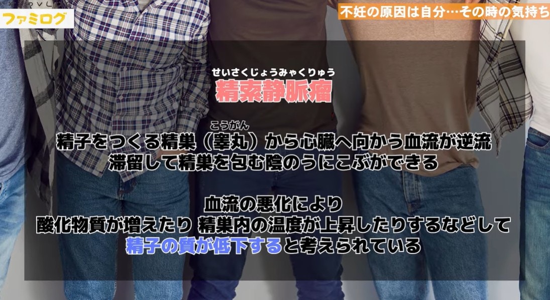 そして、夫婦で受けた不妊検査の結果、男性不妊の原因の一つである「精索静脈瘤(せいさくじょうみゃくりゅう)」と診断されます。自覚症状がほぼなかった川田さんにとって、この診断は大きなショックでした。