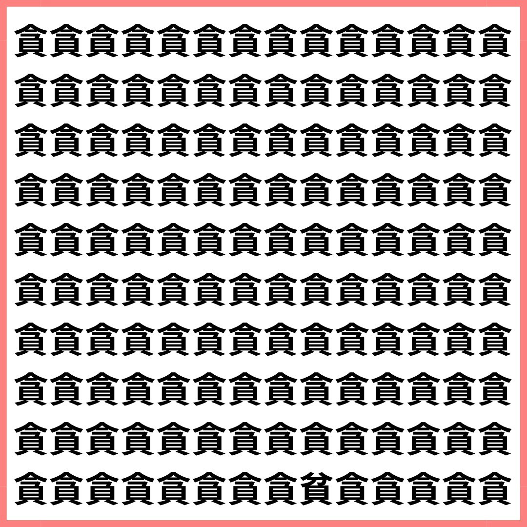 たくさんの「貪」の中に、1文字だけ違う漢字が混ざっています。
