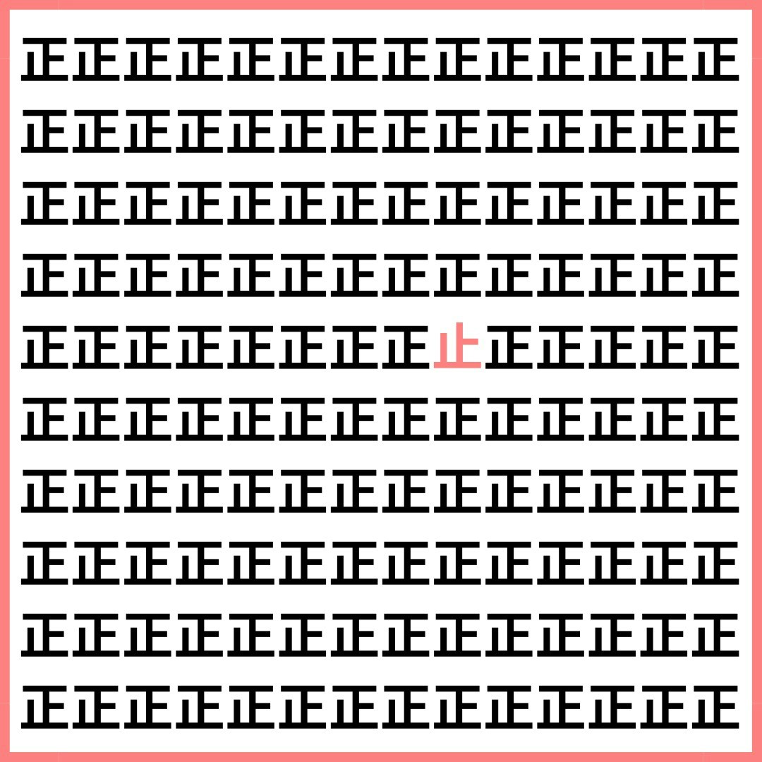 たくさんの「正」の中に、1文字だけ違う漢字が混ざっています。