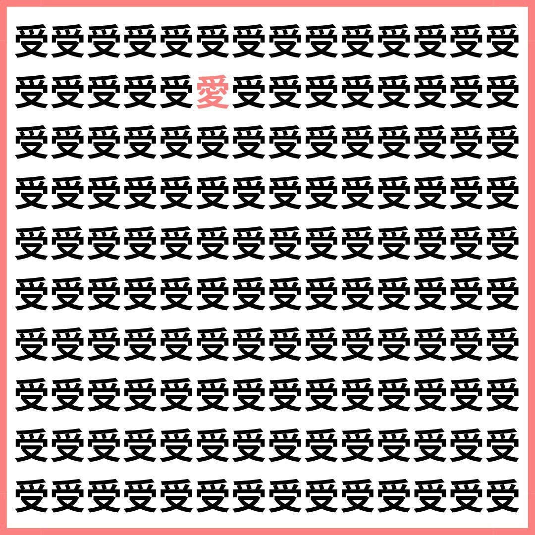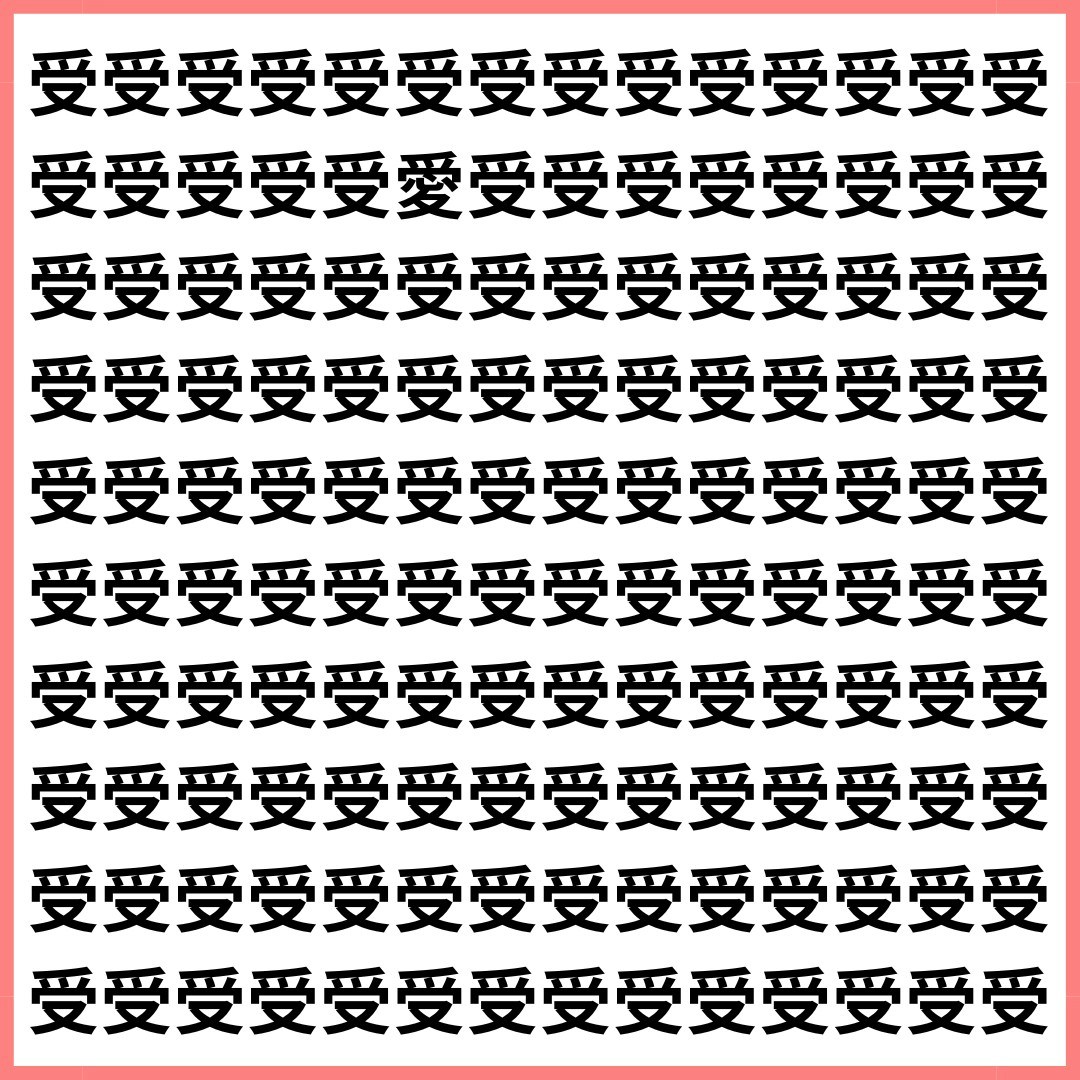 たくさんの「受」の中に、1文字だけ違う漢字が混ざっています。