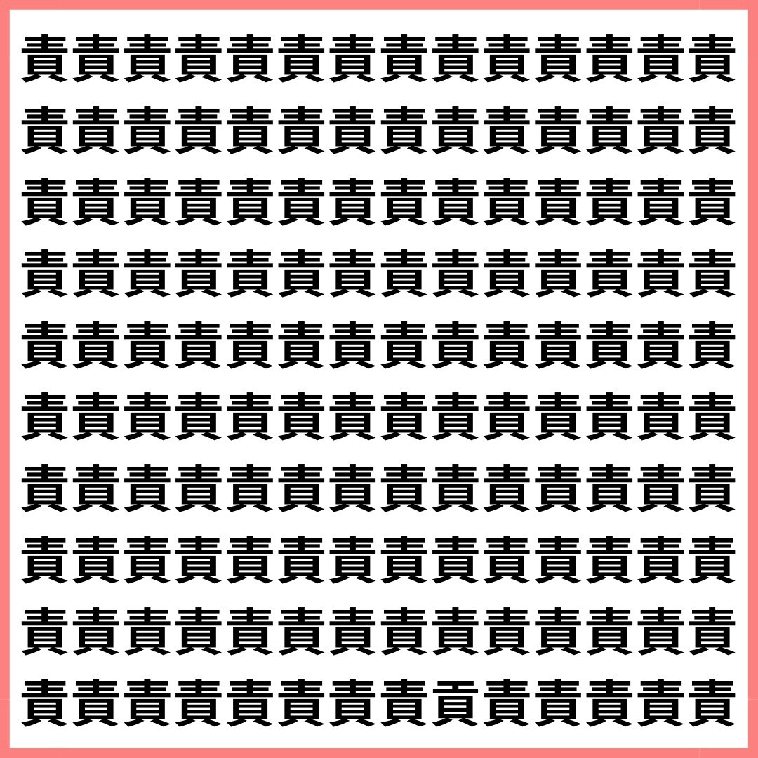 たくさんの「責」の中に、1文字だけ違う漢字が混ざっています。