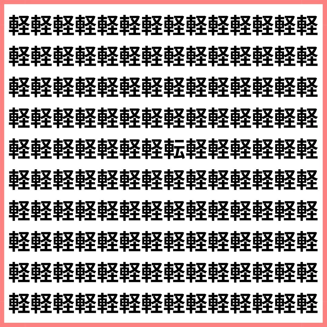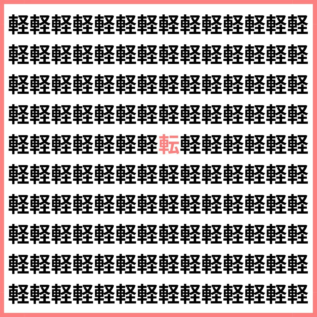 たくさんの「軽」の中に、1文字だけ違う漢字が混ざっています。
