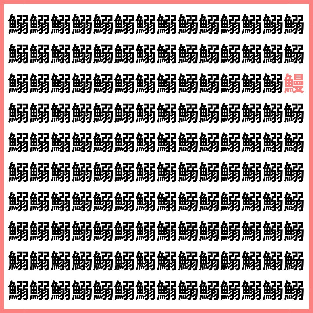 たくさんの「鰯」の中に、1文字だけ違う漢字が混ざっています。