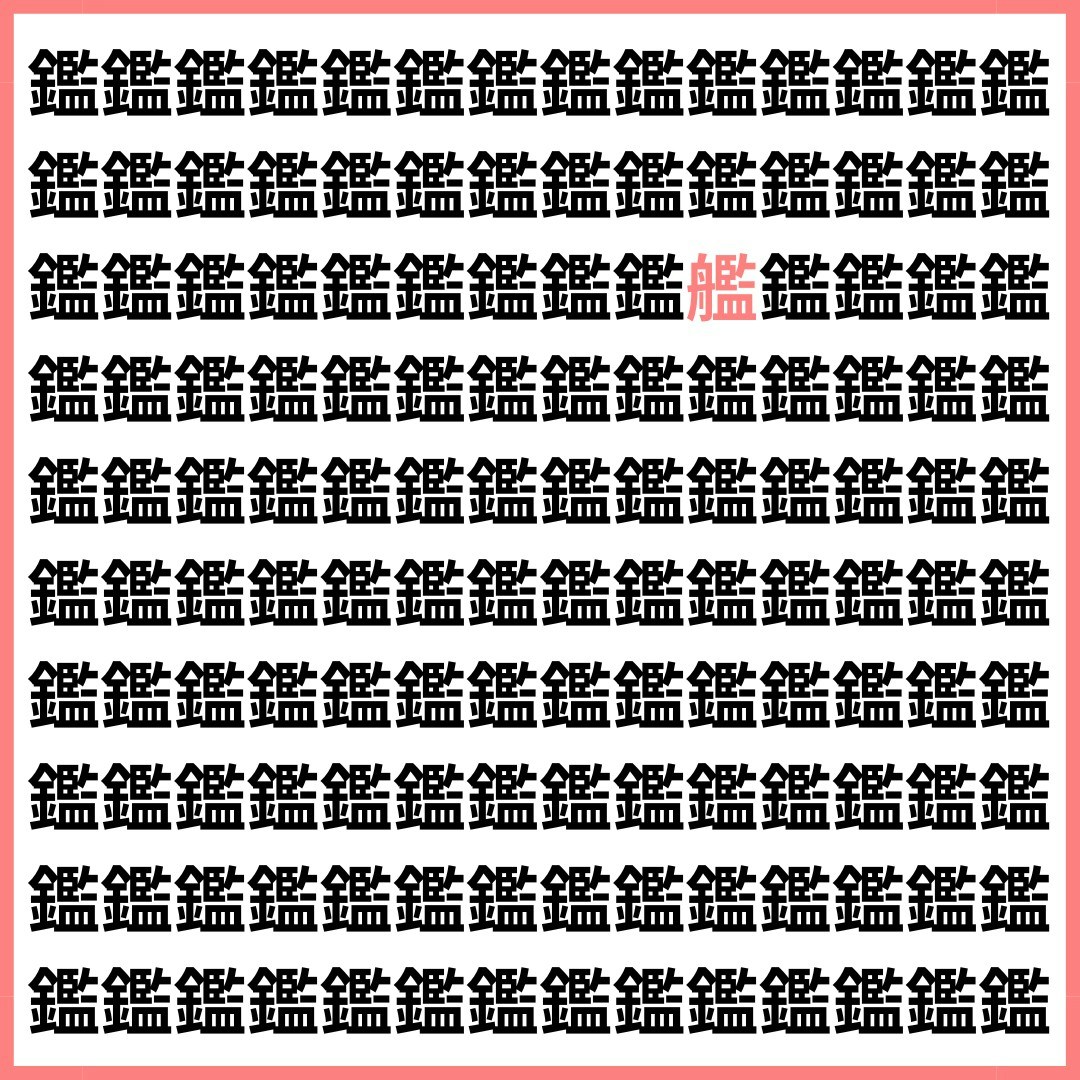たくさんの「鑑」の中に、1文字だけ違う漢字が混ざっています。