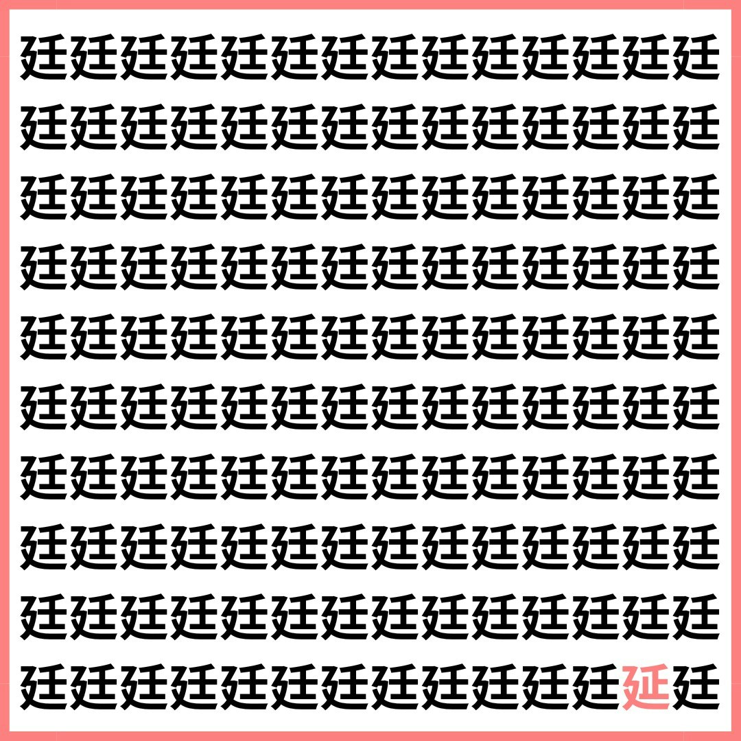 たくさんの「延」の中に、1文字だけ違う漢字が混ざっています。