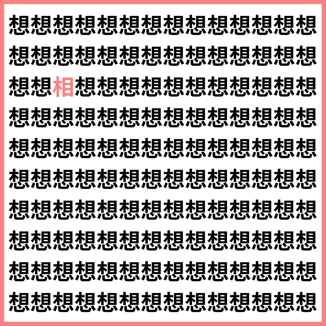 たくさんの「想」の中に、1文字だけ違う漢字が混ざっています。