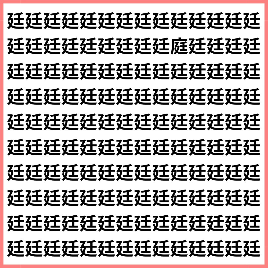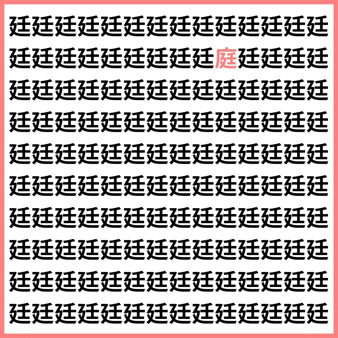 たくさんの「廷」の中に、1文字だけ違う漢字が混ざっています。