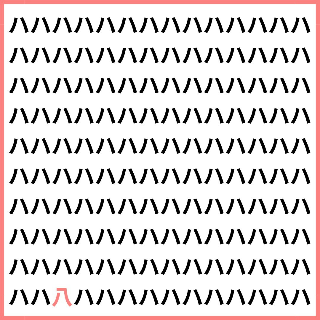 たくさんの「ハ」の中に、1文字だけ違う漢字が混ざっています。