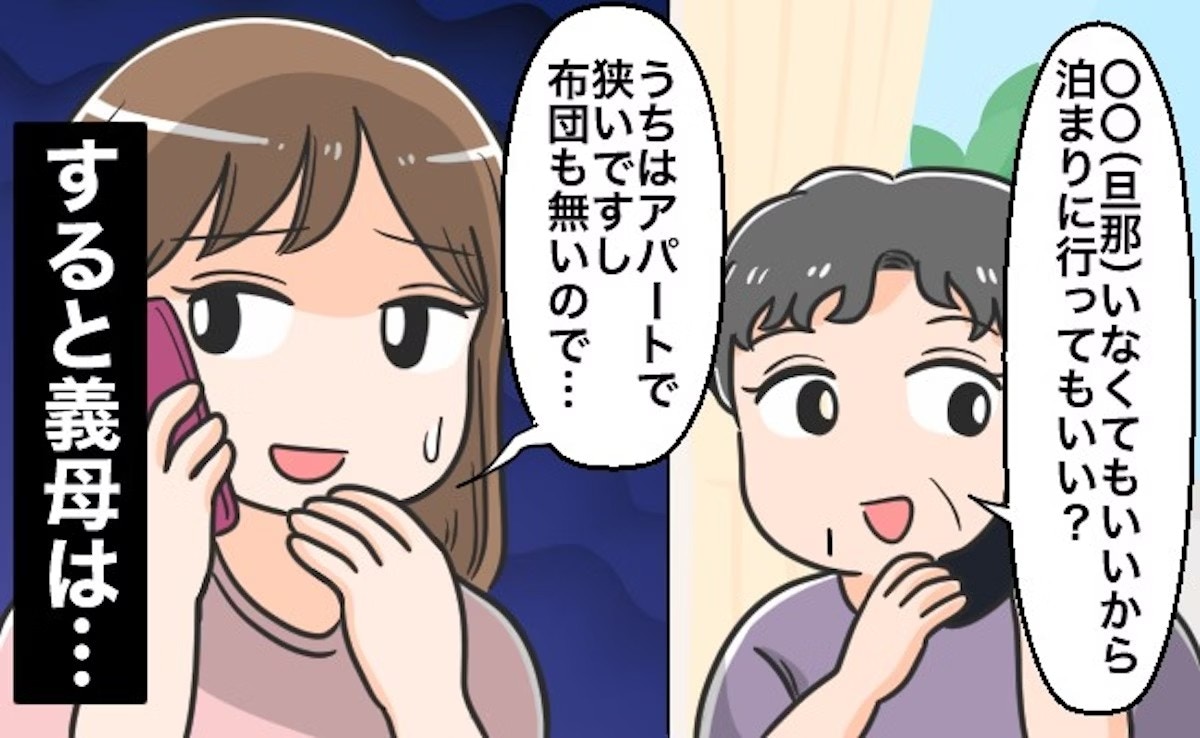義両親と投稿者さんとの関係性や距離感がわからないものの、普通は夫がいない日に泊まりに来るのは避けるものだと思います。明らかに投稿者さんは断る理由を告げているのに「居間でいい。布団も持っていく。」と言うのはあまりにも図々しい気がしますよね。