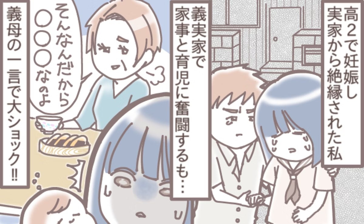 旦那(1つ歳上)とは1年くらい付き合ってて高2になってすぐに妊娠発覚して、わたしの親からは反対されて産むならもう関わらないと言われ、旦那の住む市営団地に引っ越してきて旦那、私、娘、義母の4人暮らししてます