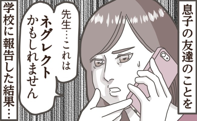 夜にも関わらず、母親に「こうたくんの家に泊めてもらえ」と言われ訪ねてきた息子のお友達。もしかして母親からネグレクトを受けているのでは?と勘付いた主人公・ゆかこは悩んだ末、自分一人では解決できないと息子たちの担任の先生へと相談しに向かうのでした。