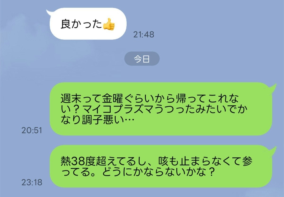 10歳の息子がマイコプラズマで入院し今週退院、免疫落ちてたのか私もマイコプラズマに感染してしまい…😭