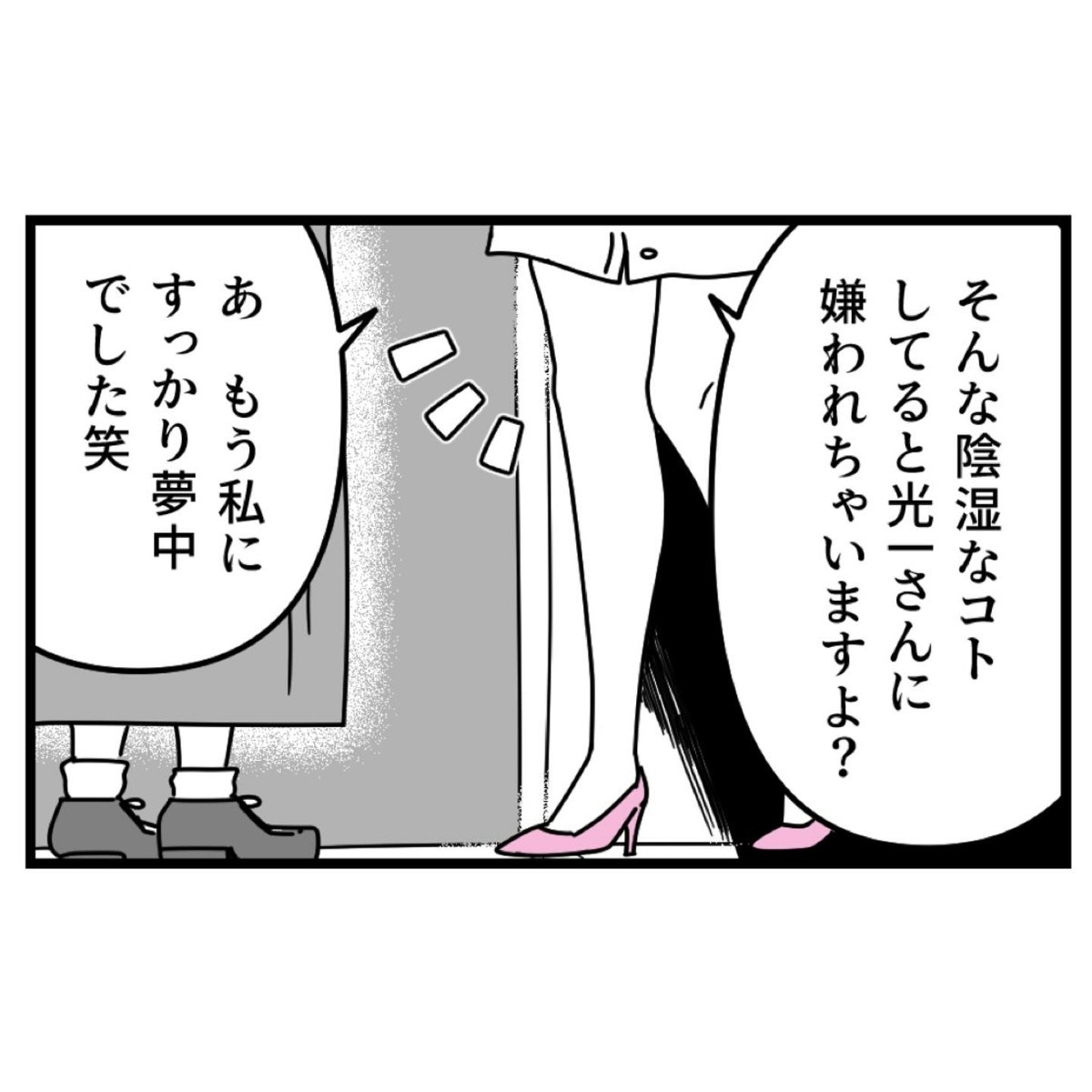 かのんは「光一はブスな優菜より、可愛い私に夢中だ」と一方的に優菜を罵倒します。浮気現場に遭遇しただけでもショックなのに、さらに容姿を侮辱された優菜は青ざめ、反論することもできません。