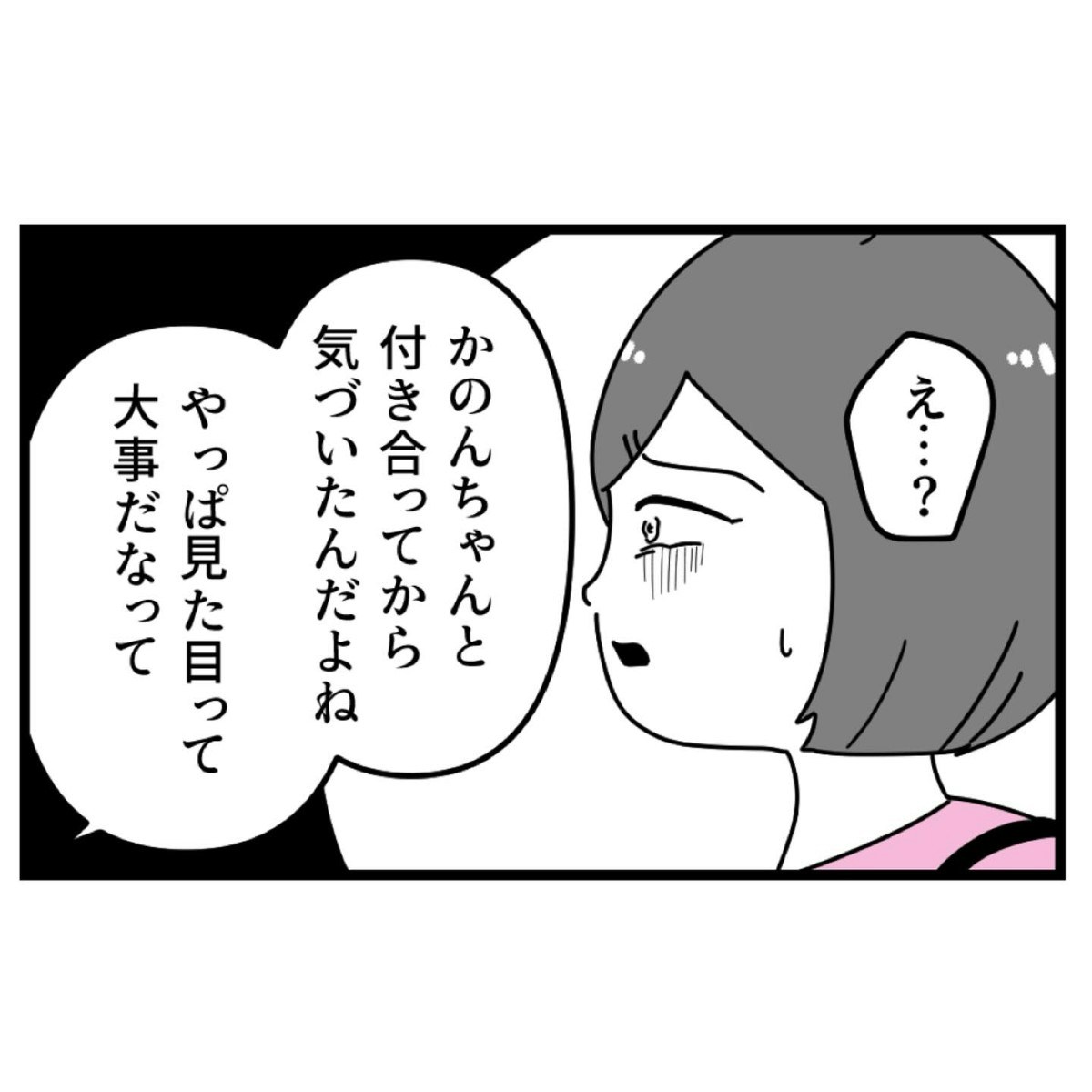 対して光一は「恥ずかしい」「自慢したい」といった他人基準ばかりを気にし、本当に大切な部分を見失っていきます。その結果、優菜を傷つけたうえ、外見に惑わされて付き合った新恋人・かのんの本性も見抜けずモラハラやDVを受け、気付いたときには既に逃げられない関係に陥るという皮肉な結末に。