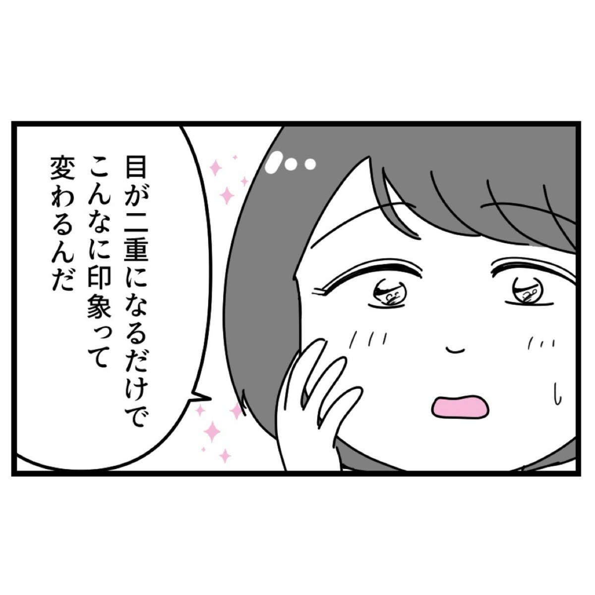術後の腫れが引き、ぱっちり二重になった自分と鏡の中で対面した優菜。以前の顔と印象がかなり違うことに、驚きが隠せません。