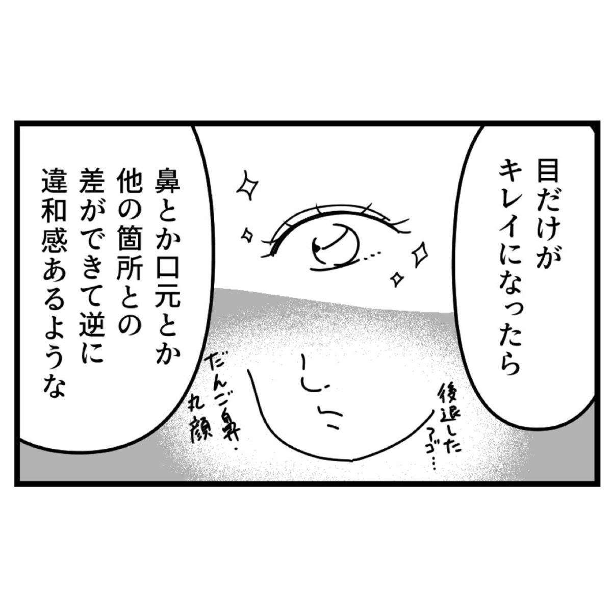 整形手術のすごさに感動する一方、鼻や口など他のパーツが気になりはじめました。ぱっちり二重になった目がアンバランスで、違和感があります。