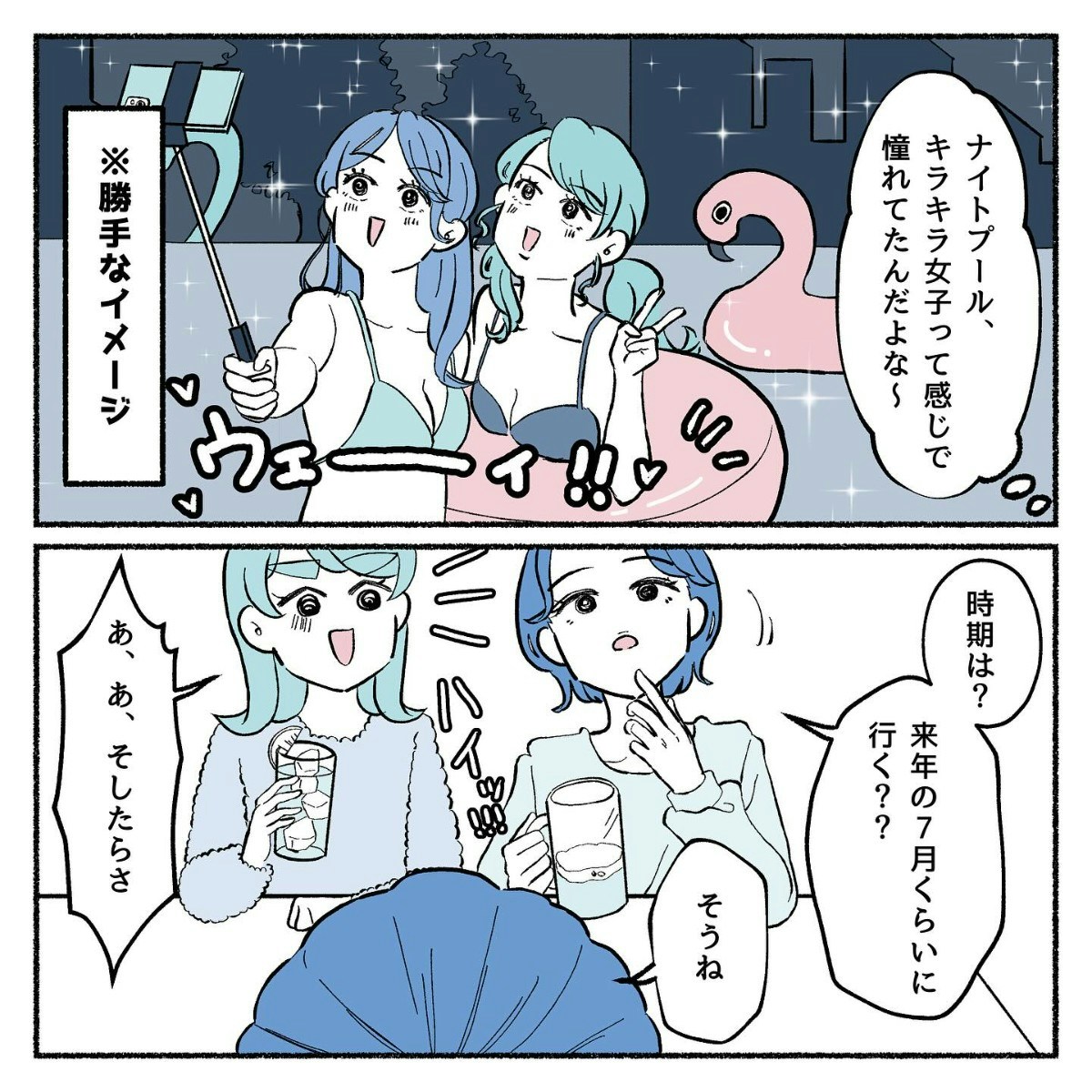 去年の10月のこと。りったさんと親友たちは「来年の夏にナイトプールに行こう」と計画を立てていました。
