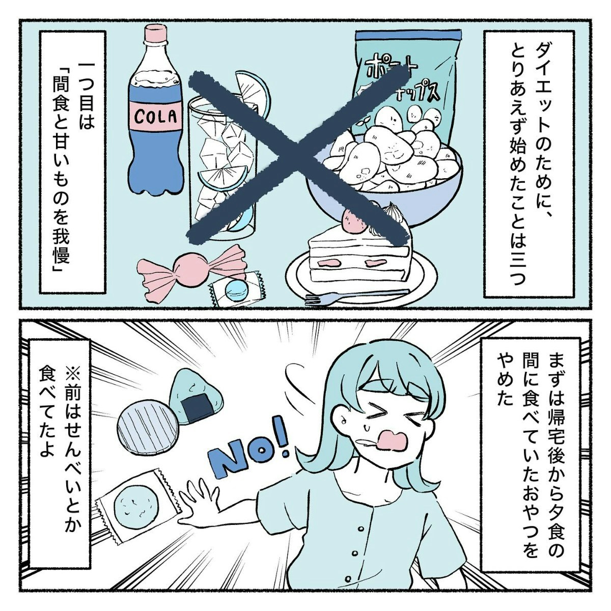 本格的なダイエット経験がないビギナーのりったさんがまず始めたのは、「間食と甘いものを我慢する」。以前は夕食前に食べていたおやつをやめました。