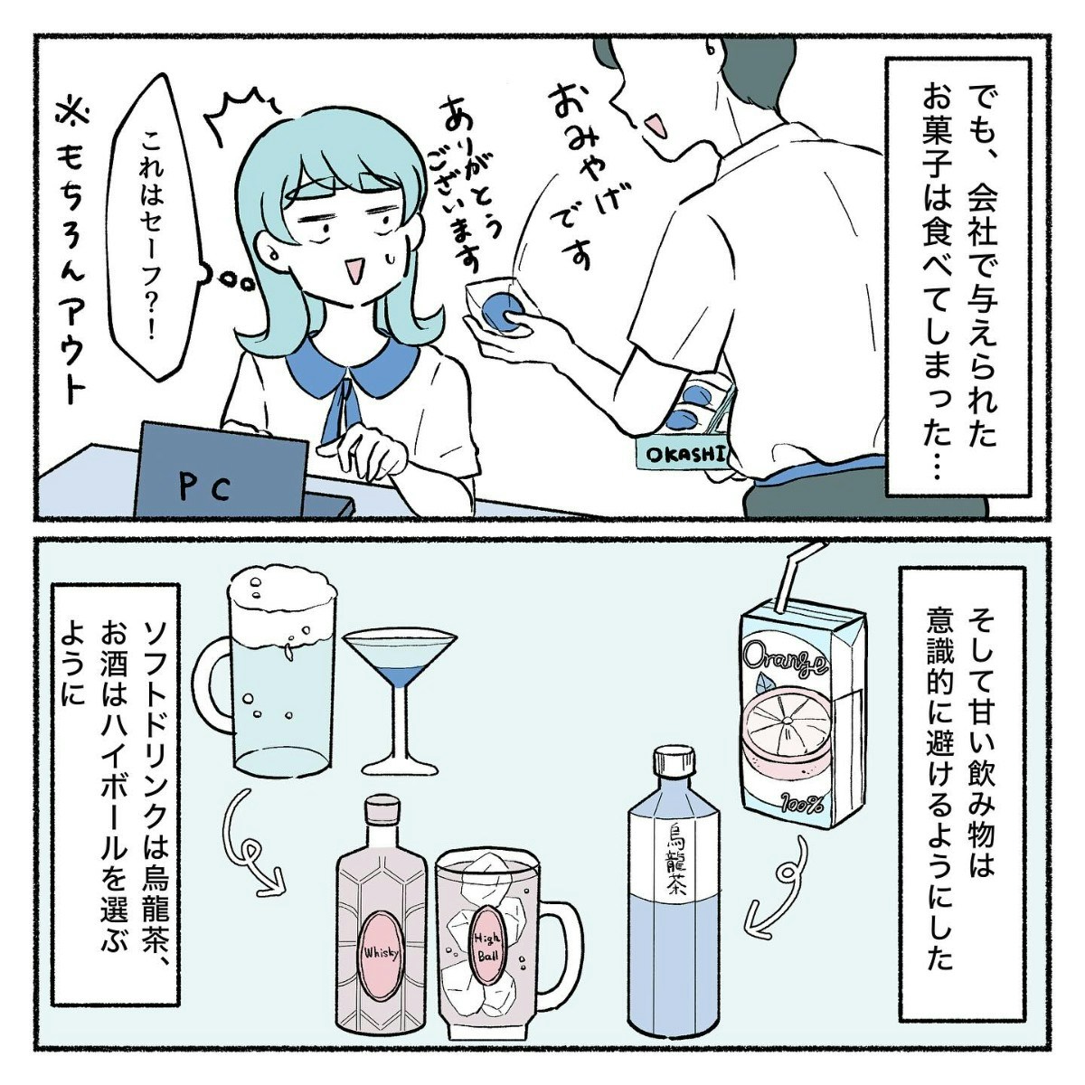 会社勤めをしていたら付き合いもあり、完全に甘いものを口にしないのは不可能です。それでもできる範囲で、甘い飲み物を避けるなどの工夫を続けます。そして二つ目に、「炭水化物を減らす」。