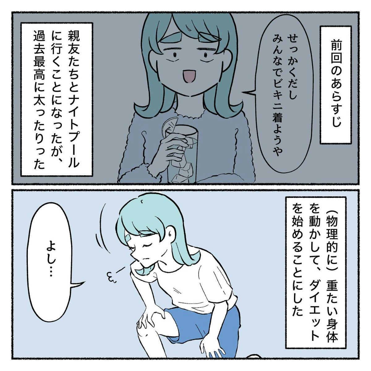 「ナイトプールでビキニを着よう」と親友たちと約束をして、はや8か月。最重記録をたたき出した体重計を目の前にして、りったさんはダイエットを始めることにしました。