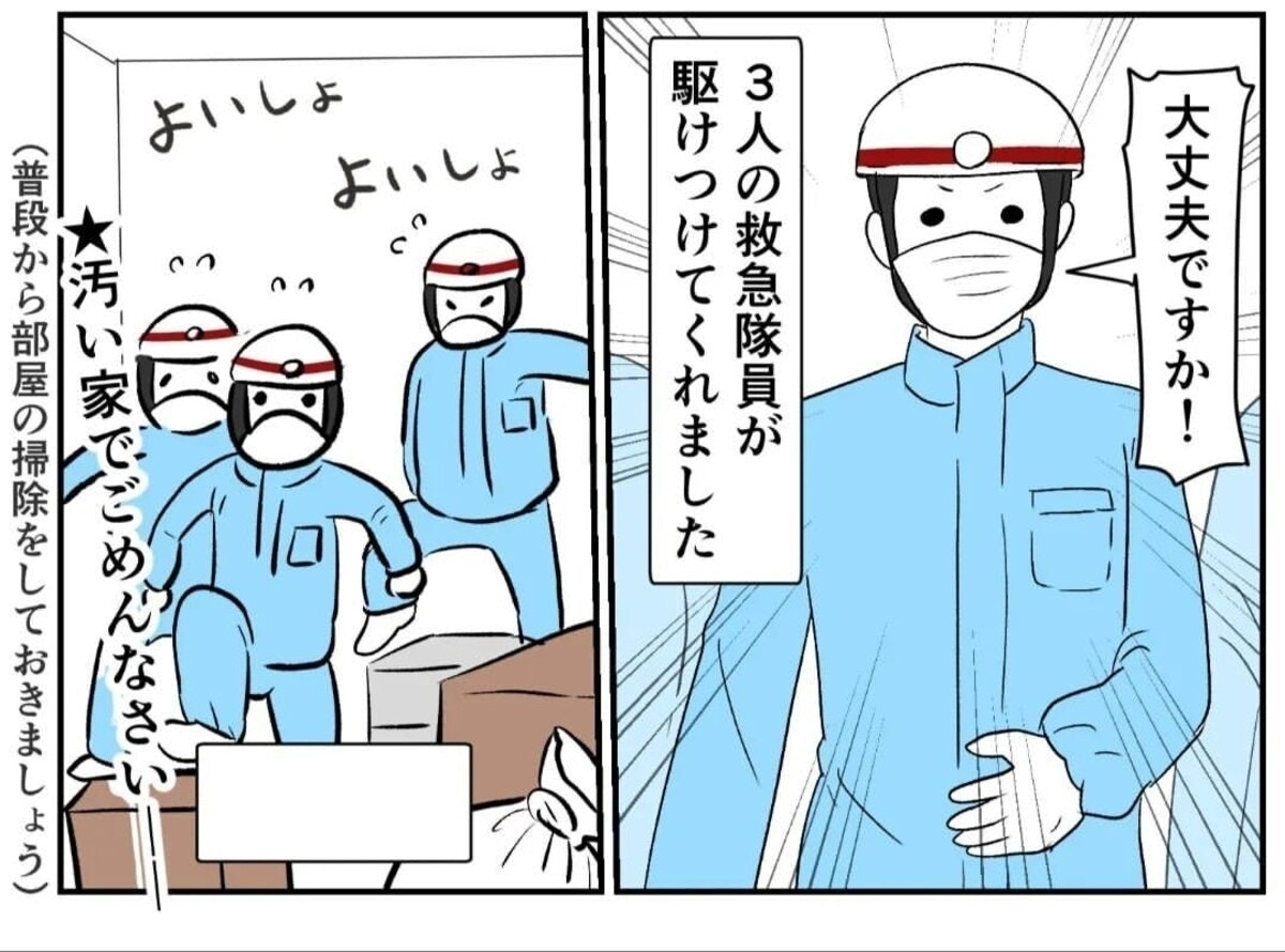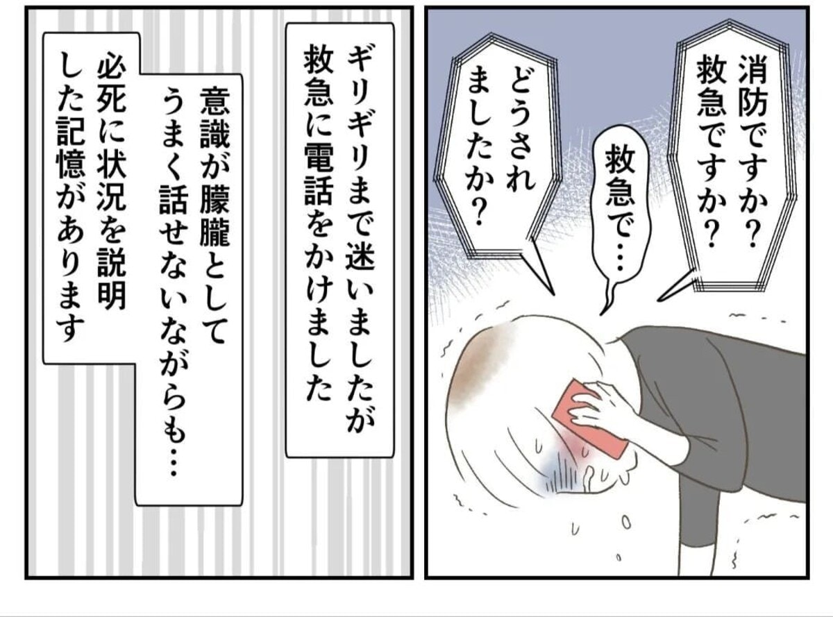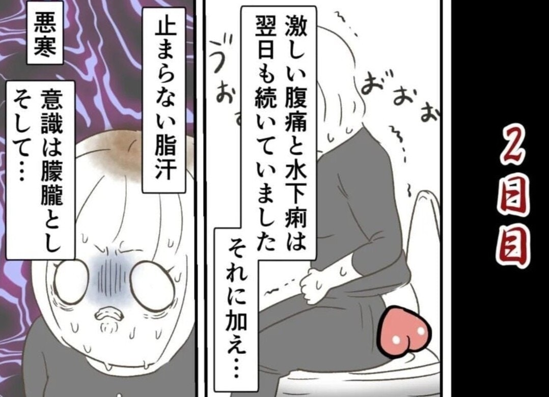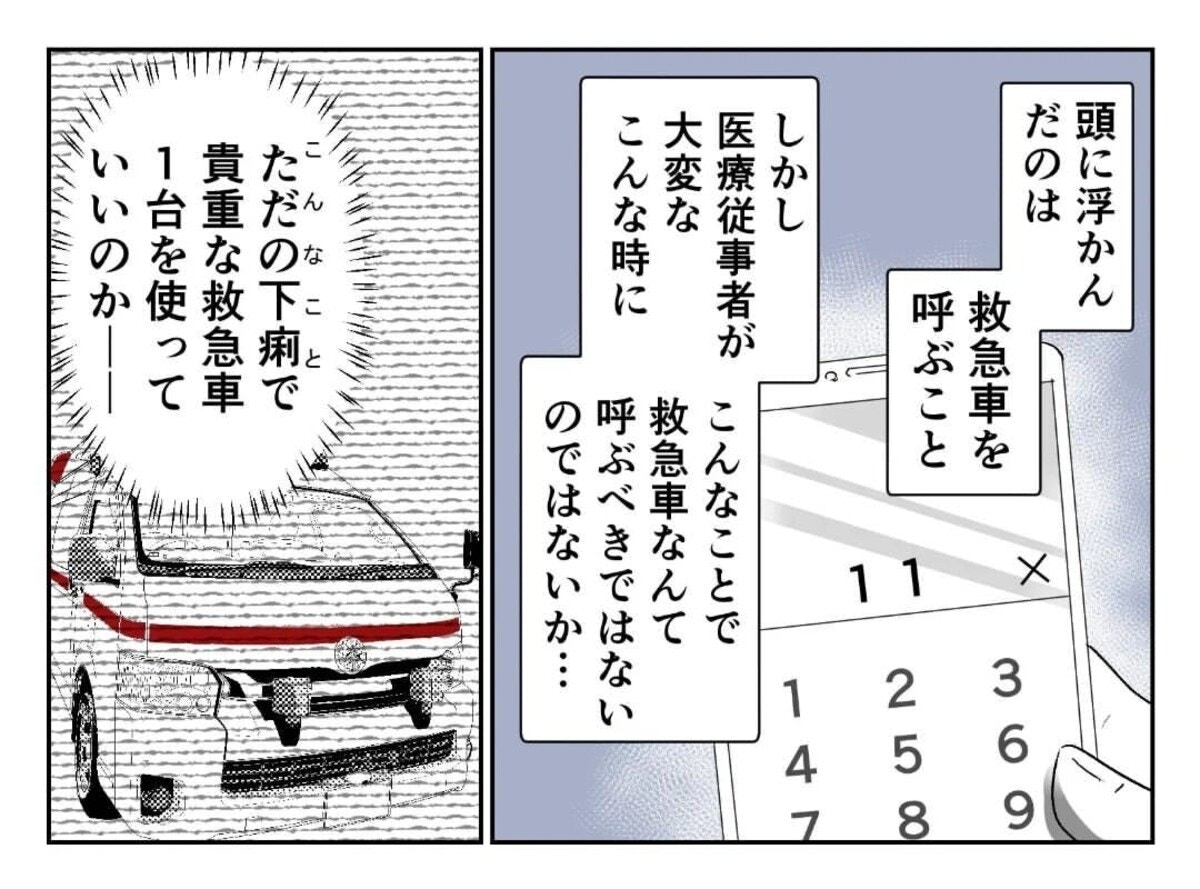尾持さんは、ただの下痢だと思い込み、救急車を呼ぶことをためらいます。ですが、意識がもうろうとするほどの症状のときは、すぐに救急に電話するべきですね。