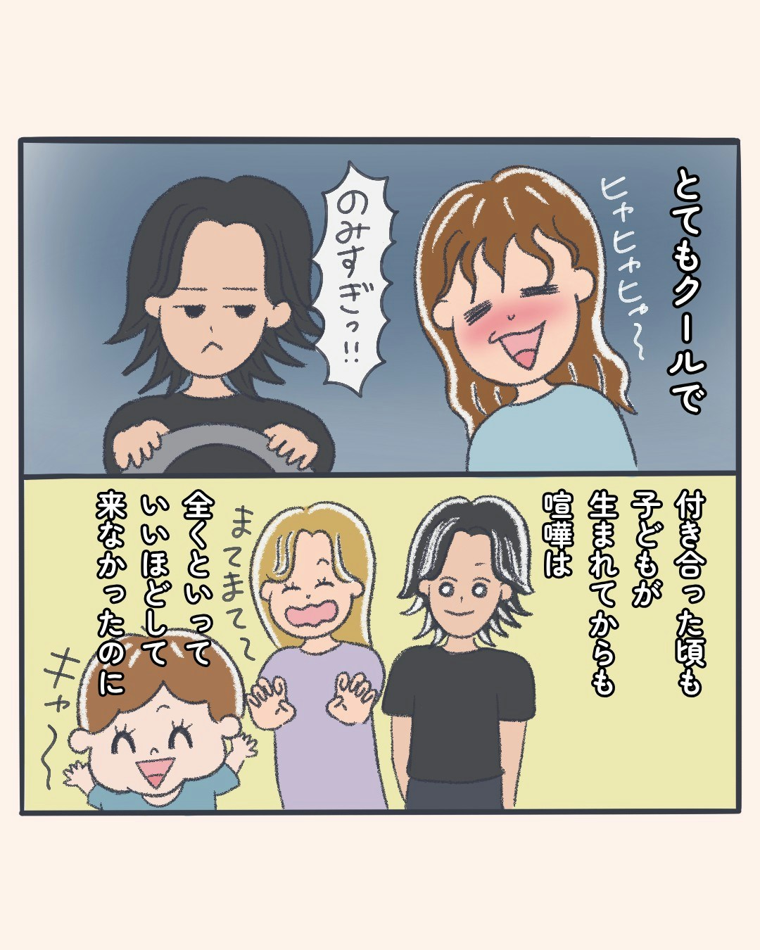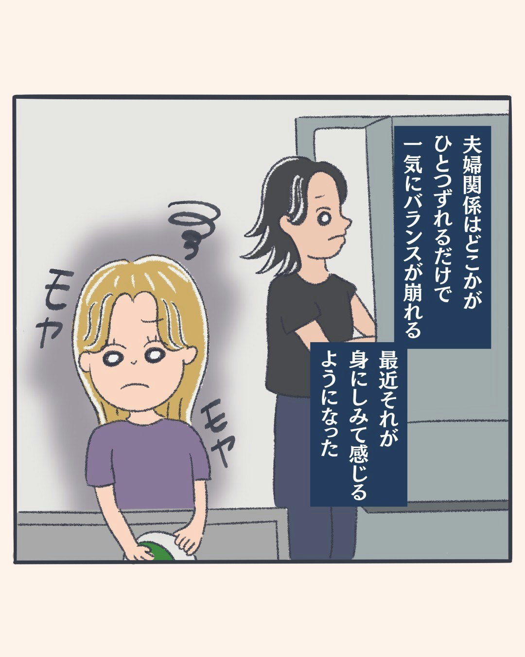 いつも穏やかで、喧嘩とは無縁だった仲良し夫婦。そんな二人に、ある日ふと小さな変化が訪れます。その一瞬の違和感をきっかけに、これまで当たり前のように保たれていた関係が、少しずつぎこちなく揺らぎ始めてしまったようです。