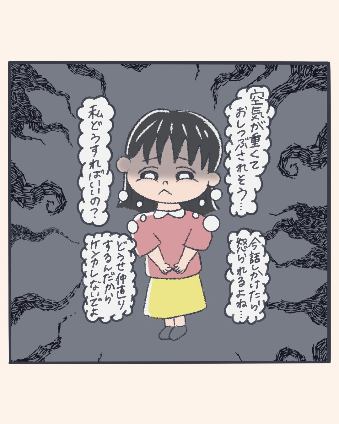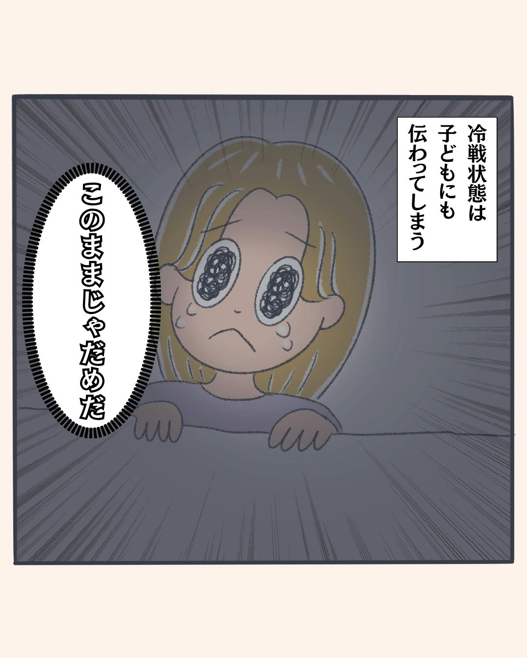 1週間まともに話していない夫婦。怒りは鎮まるどころかイライラが増すばかり。そんな時、主人公は自分の幼少期のころ両親が喧嘩していた時のことを思い出しました。親の喧嘩は冷戦といえど子どもには伝わってしまいます。主人公はある作戦を考えました。その作戦とは?