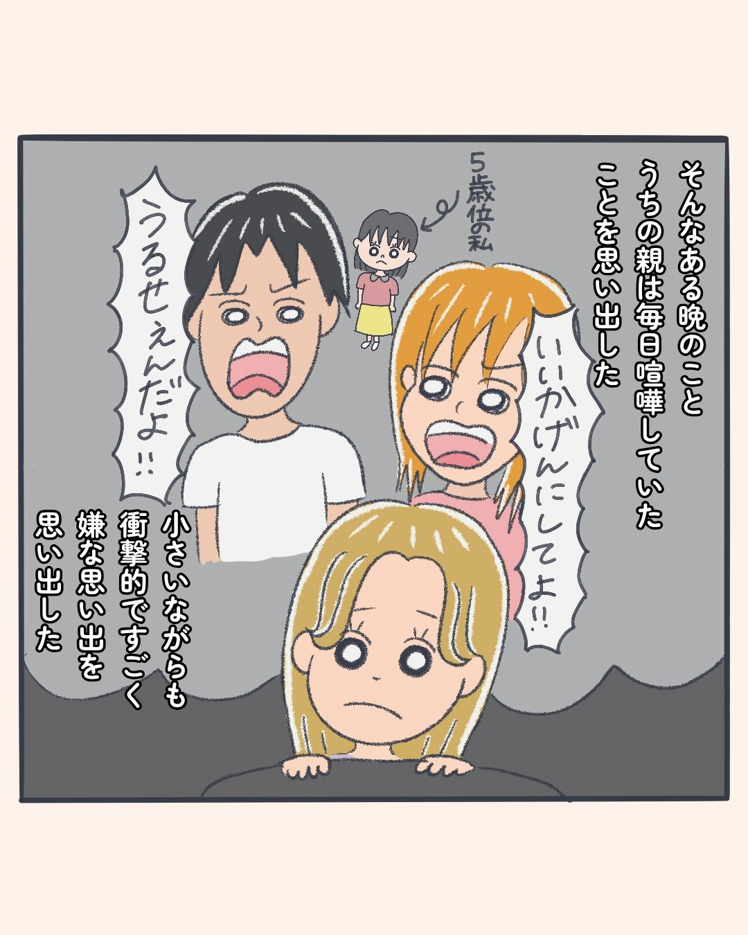 そんな時、自分の幼少期のことを思い出しました。親の喧嘩は小さな子どもにとって衝撃的なできごとですよね。どうしたらいいか分からず戸惑っていた自分を鮮明に思い出したのです。