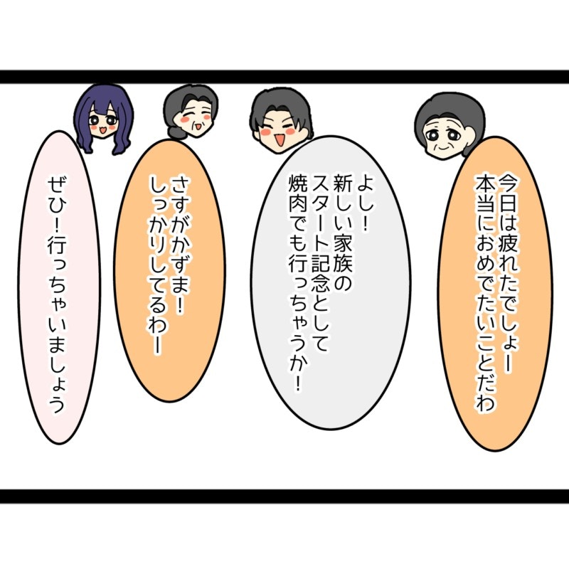 義母は「もう家族なんだから」と言い、優しそうな義母で良かったとみゆさんも一安心。そして新しいスタート祝いで行った焼肉屋でさっそく状況が一変するのです。