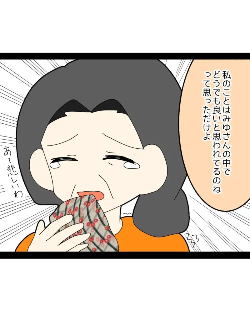 「自分は大切に思われていない」と意味不明な発言をする義母。そんなつもりは全く無かったみゆさんは、すぐに否定しますが…。
